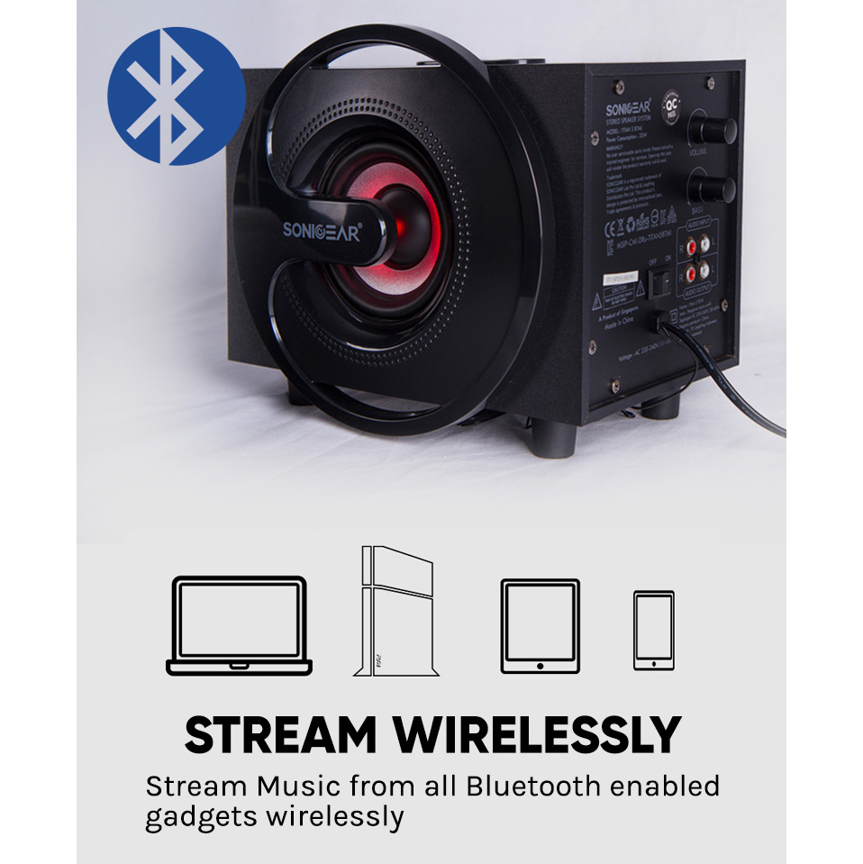 SonicGear Titan 5 BTMI Bluetooth Speakers with 4 Inch Bass Driver | 7 LED Light