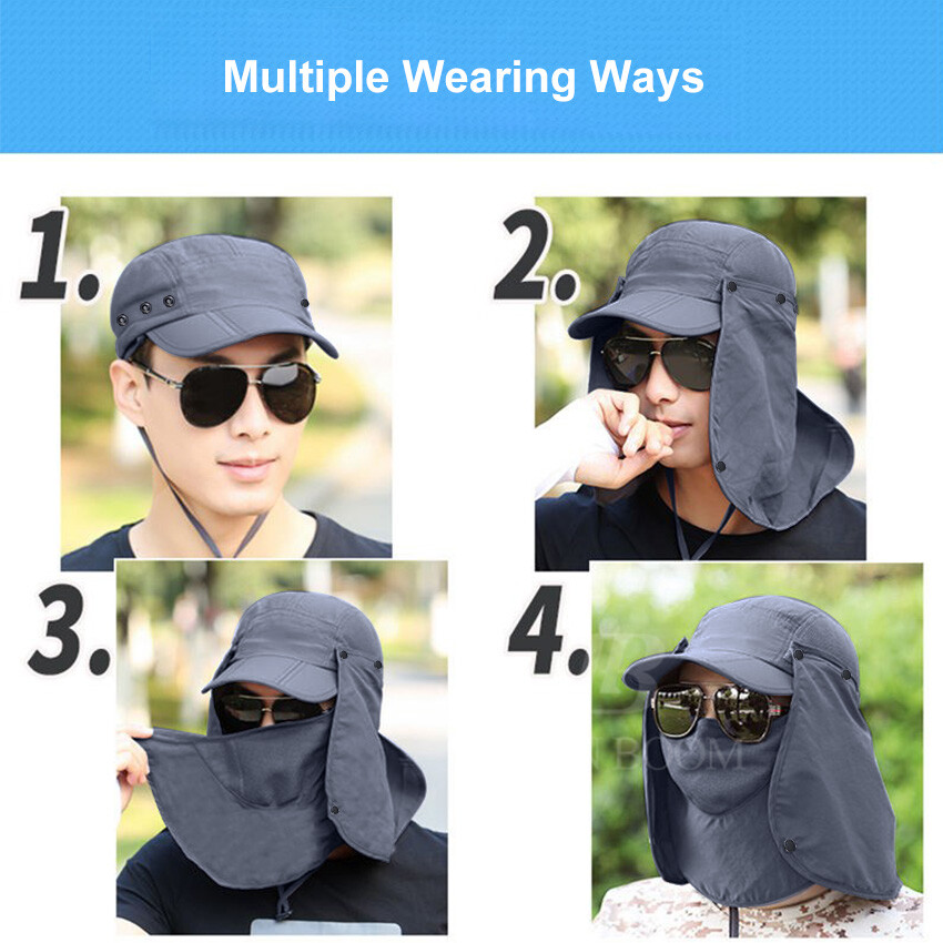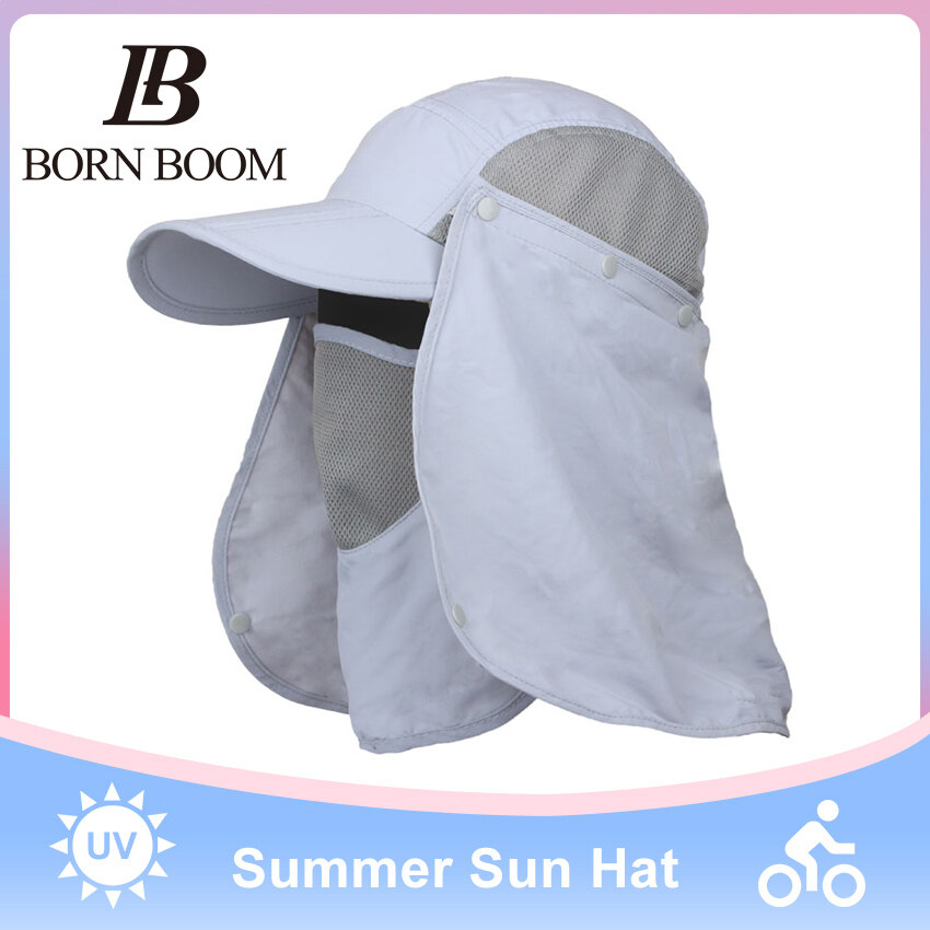 BornBoom Summer Sun Hat Unisex 360°Outdoor Sun Protection Fishing Hats UV Protective Cap Collapsible Summer Big Face Cover Beach Cap with Face Neck Cover