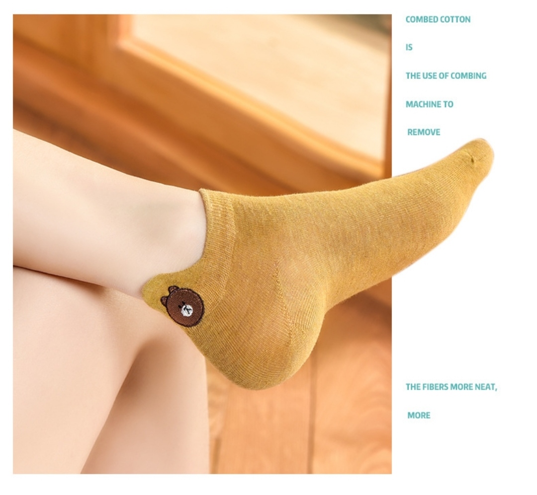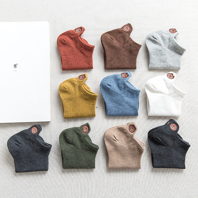 (10 pairs)Woman Cute Embroidered Cartoon Bear Cotton Socks Kawaii Candy Color Breathable Comfortable Boat Socks Female Casual Sock Ladies Ankle Socks