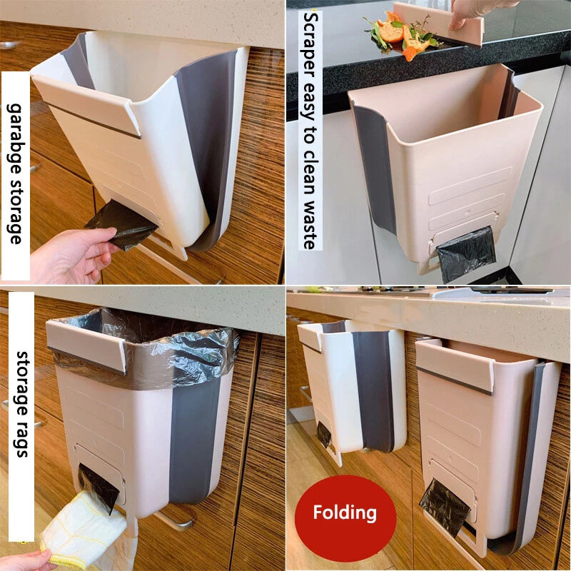 1PCS Multifunction Wall Mounted Folding Waste Bin Kitchen Cabinet Door Hanging Trash Bin Garbage Car Trash Can Wall Mounted Foldable Cleaning Towel Holder Rack Shelf