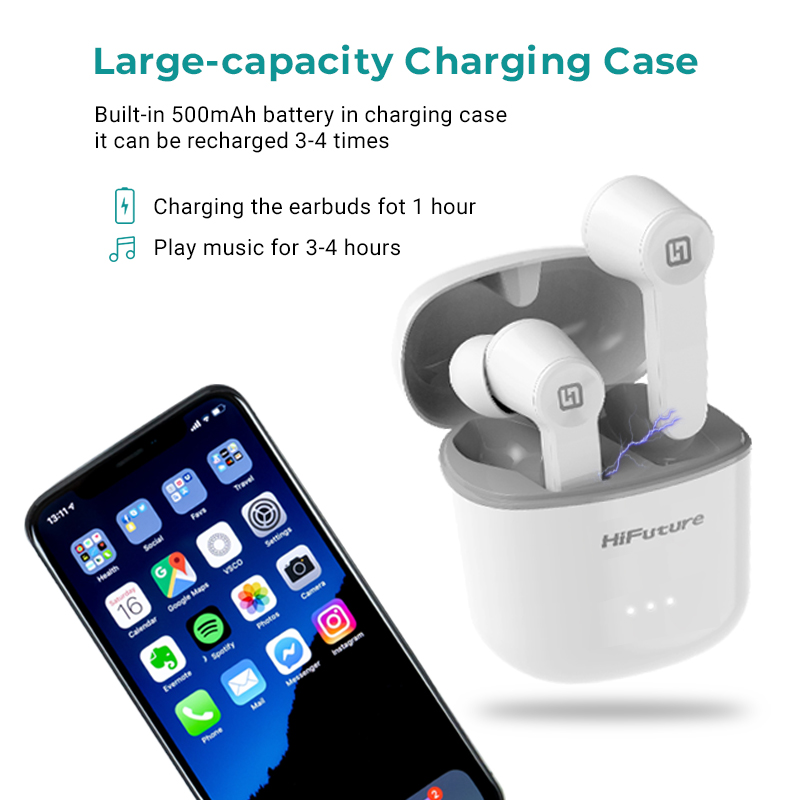 HiFuture FlyBuds True Wireless Earbuds Bluetooth 5.0 Earphone Sport Music Earphones Touch Control Earbuds Noise Canceling Headset with Built-in Microphone -Pink/Green/White/Black