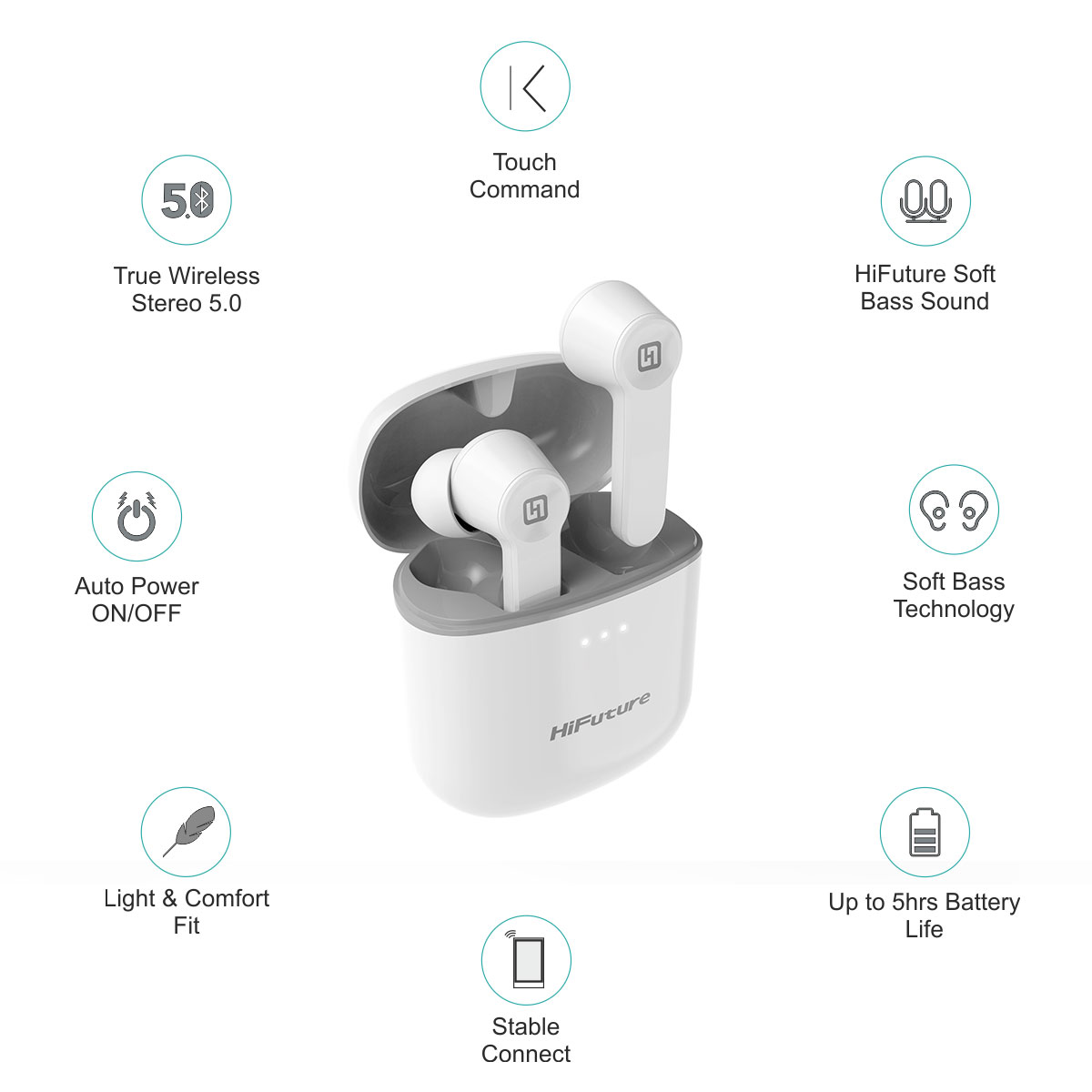 【SG Seller】HiFuture FlyBuds True Wireless Earbuds Bluetooth 5.0 Earphone Sport Music Earphones Touch Control Earbuds Noise Canceling Headset with Built-in Microphone -Pink/Green/White/Black