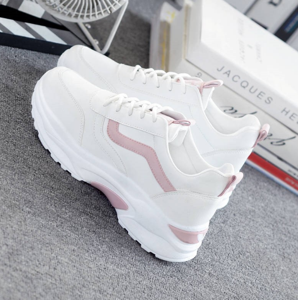 GanGdun New Women's new lace-up low-heel white shoes sports casual sneakers