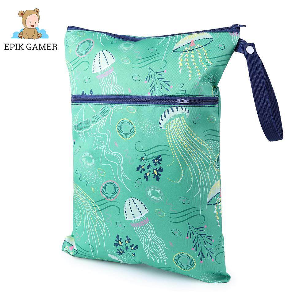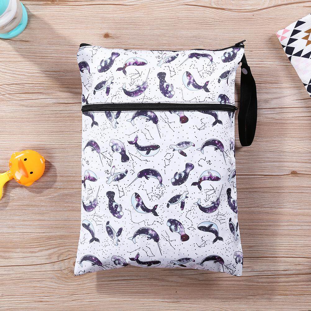 Waterproof Reusable Wet Bag Printed Nappy Bags Diaper Bag with Two Zipper