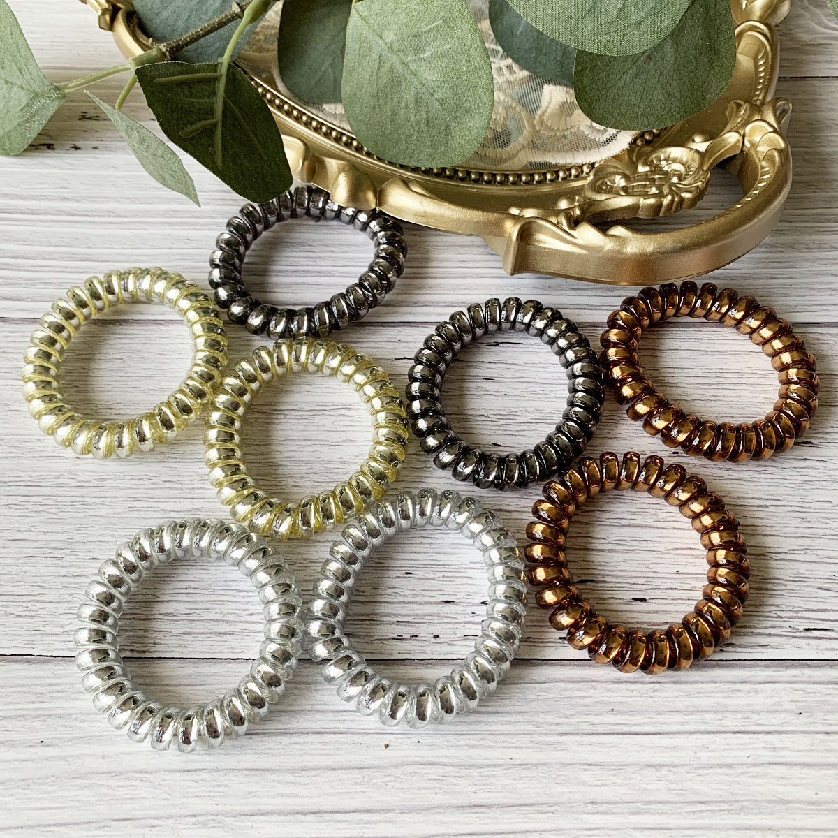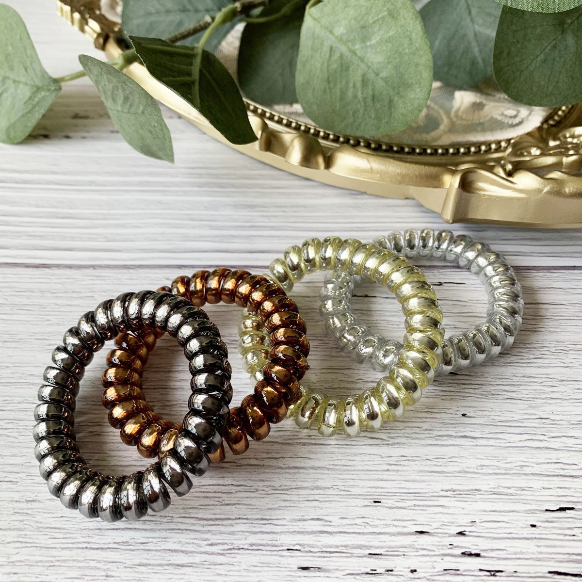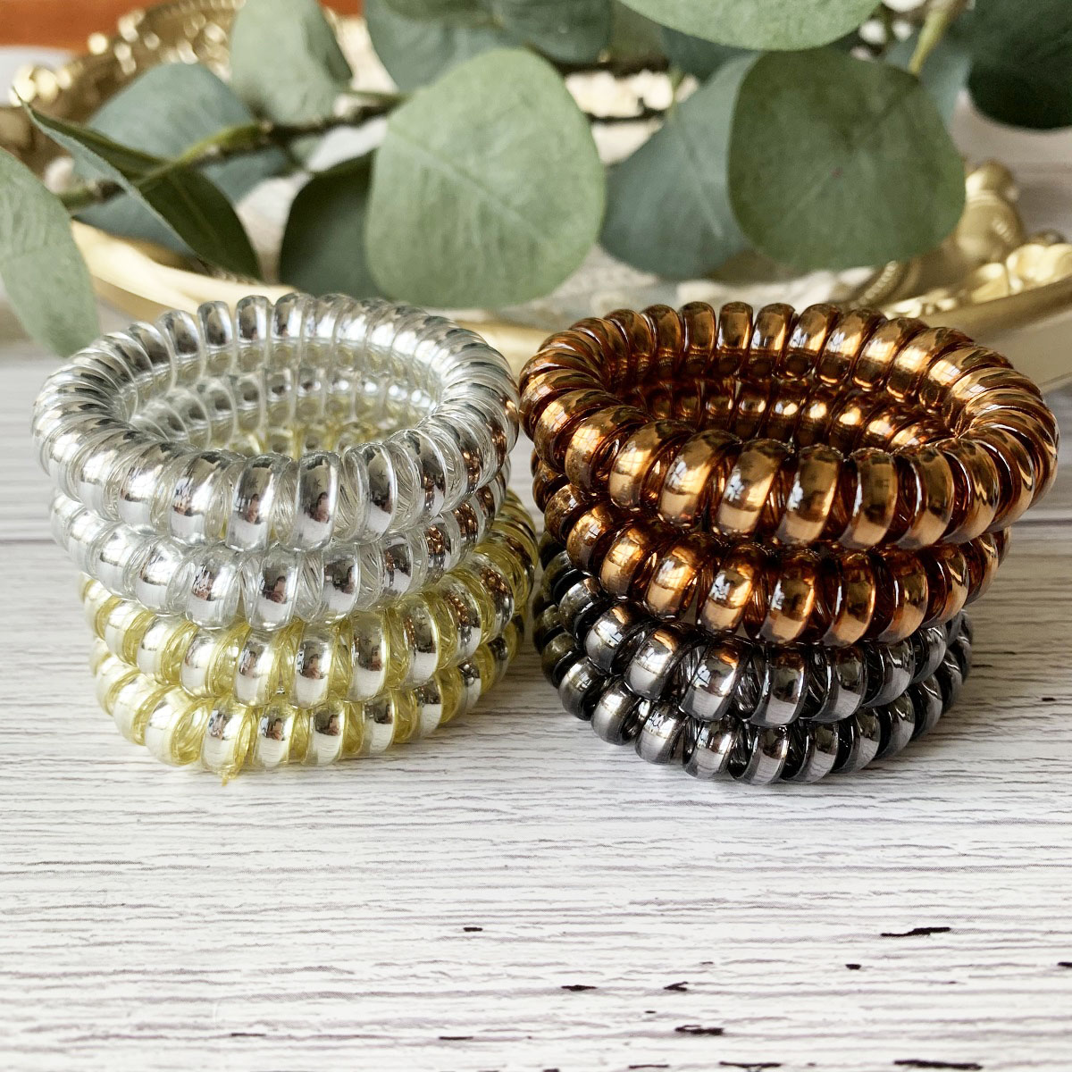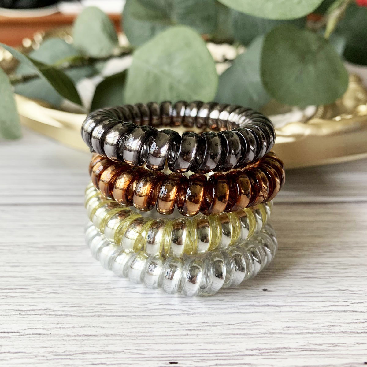 [SG Metallic Light] 4pc set 5cm Metallic Big Coil Hair Ties, Traceless Hair Ties, Phone Cord Hair Ties Multicolor Large Spiral Hair Ties, Mega Hair Coil Set for Thick, Curly and Long Hair, Dent, Creas