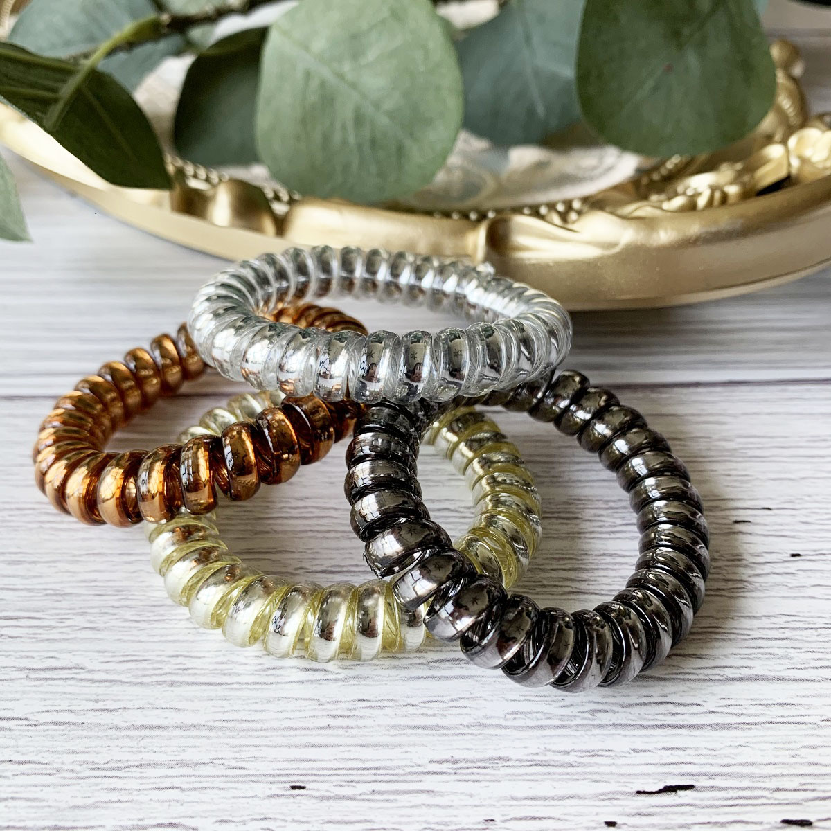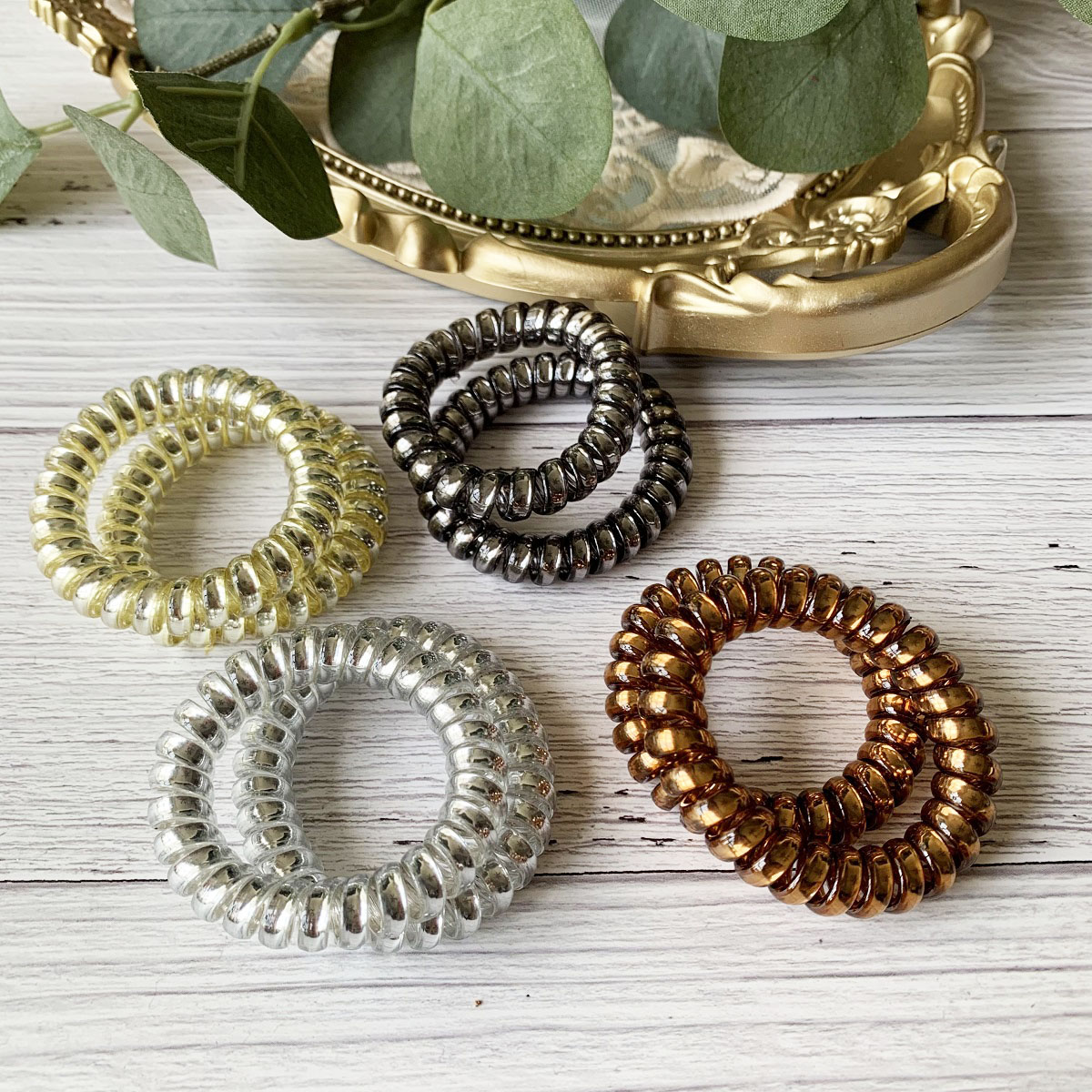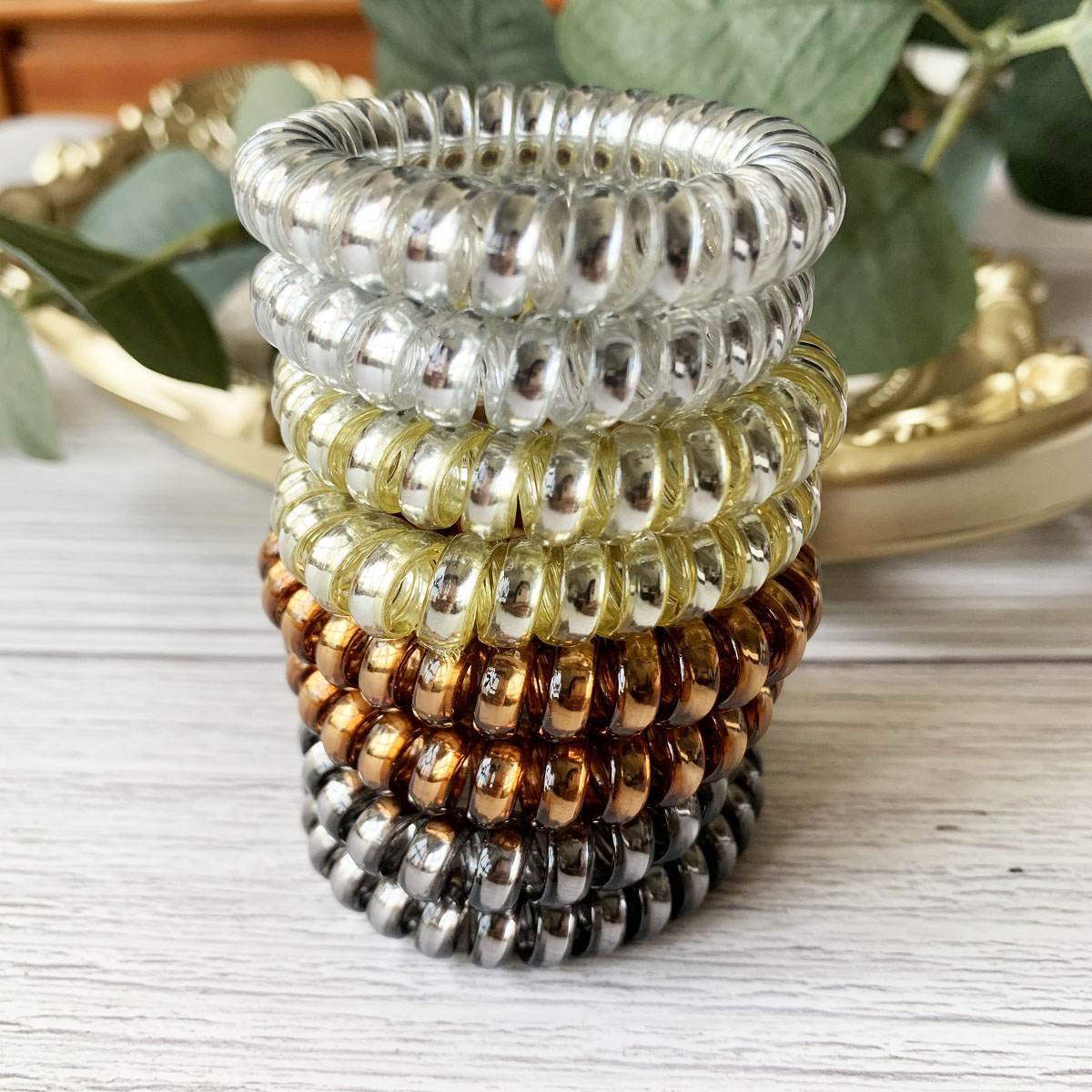 [SG Metallic Light] 4pc set 5cm Metallic Big Coil Hair Ties, Traceless Hair Ties, Phone Cord Hair Ties Multicolor Large Spiral Hair Ties, Mega Hair Coil Set for Thick, Curly and Long Hair, Dent, Creas