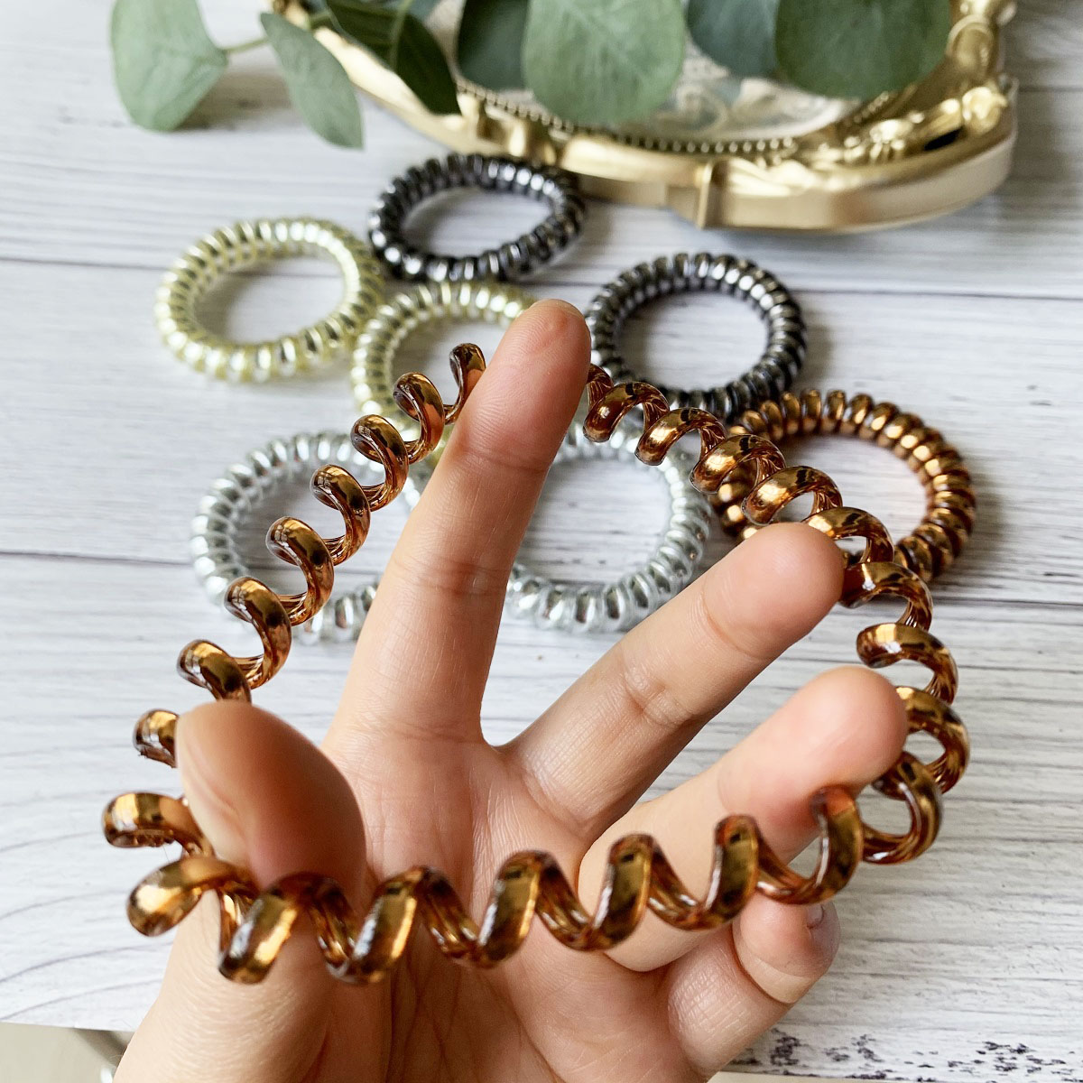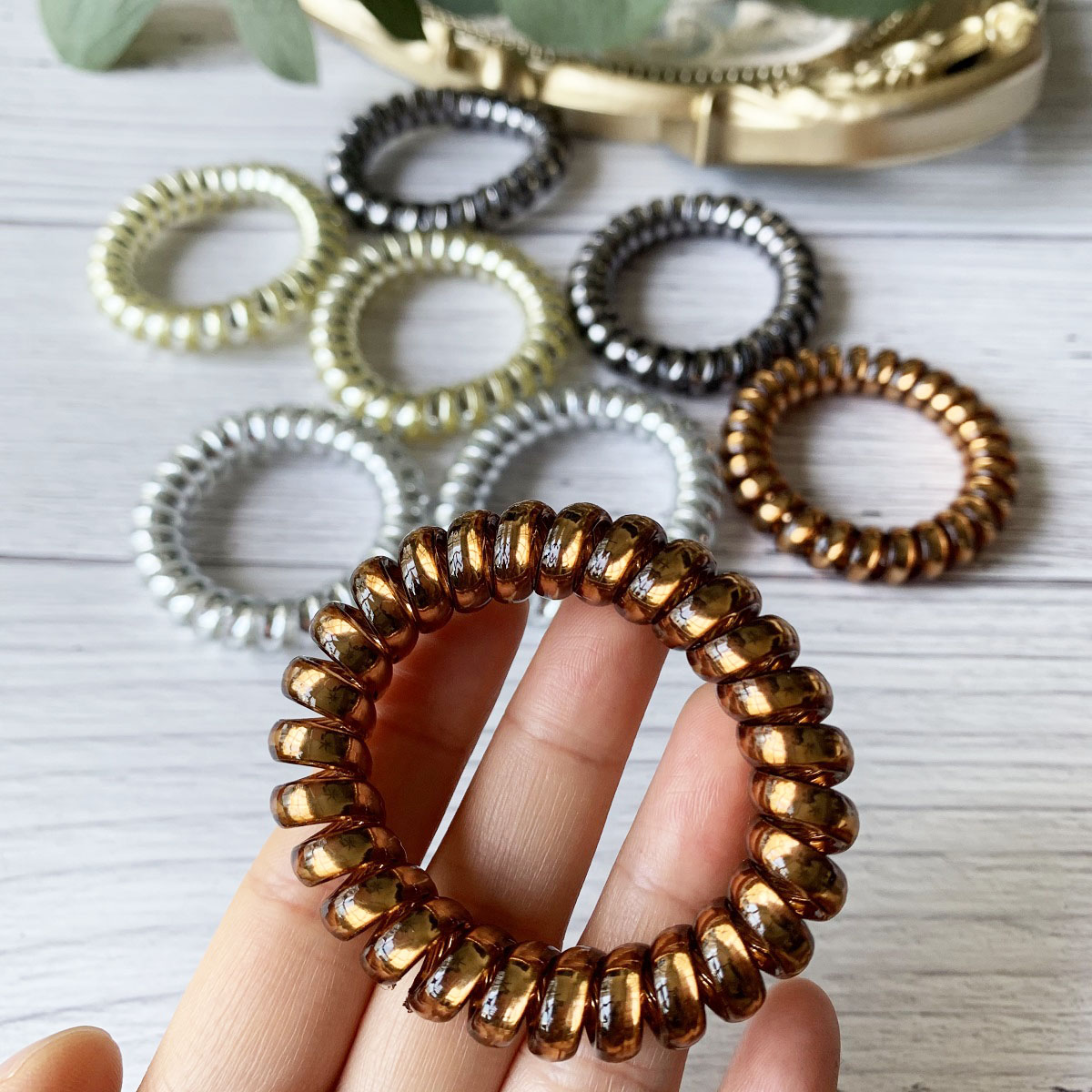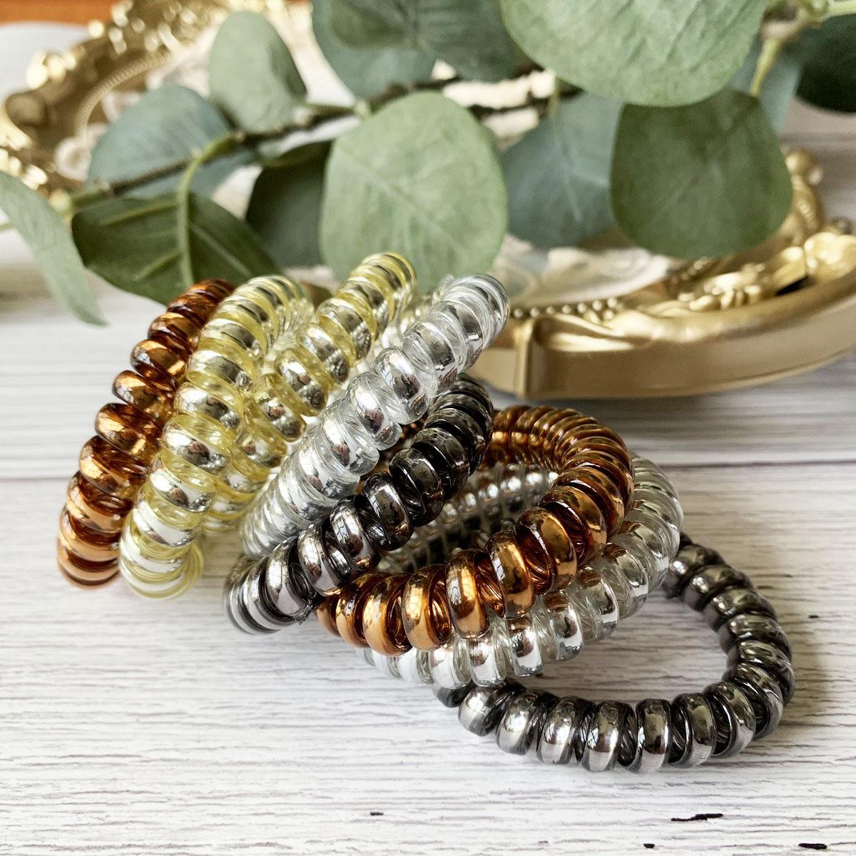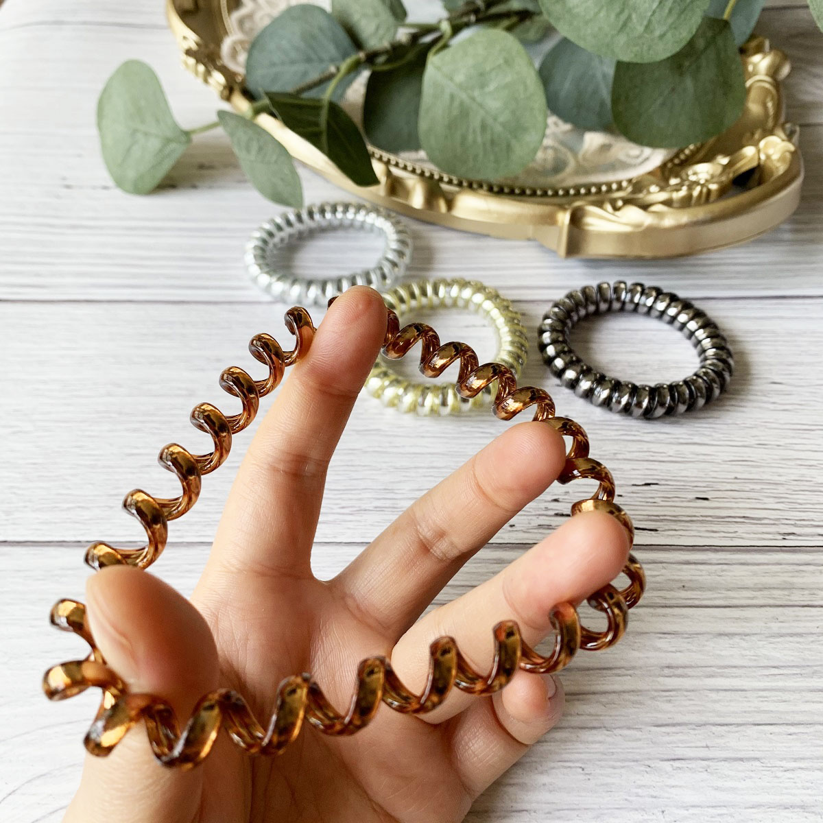 [SG Metallic Light] 4pc set 5cm Metallic Big Coil Hair Ties, Traceless Hair Ties, Phone Cord Hair Ties Multicolor Large Spiral Hair Ties, Mega Hair Coil Set for Thick, Curly and Long Hair, Dent, Creas