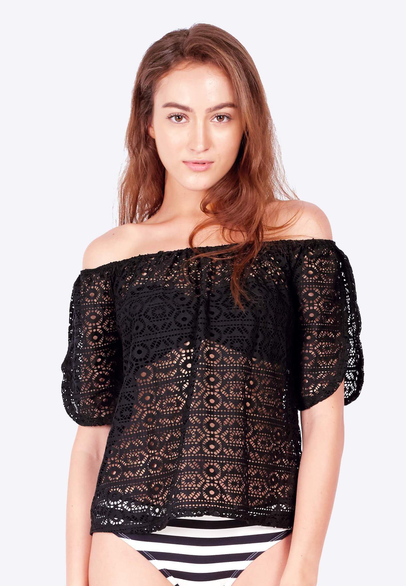 -Off-Shoulder finish with Over-lap Half Sleeves.