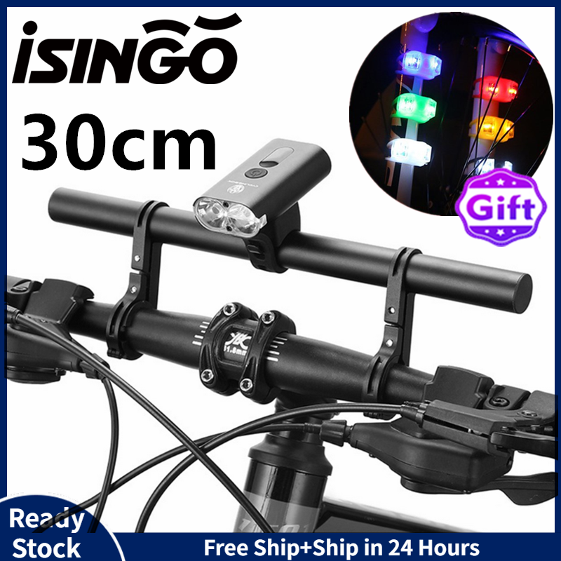 iSingo 30CM MTB Handlebar Extension Bike Handlebar Extender Horn Headlight Camera Mount Bicycle Bracket Extension Bar Handle bar Bracket Extender Holder