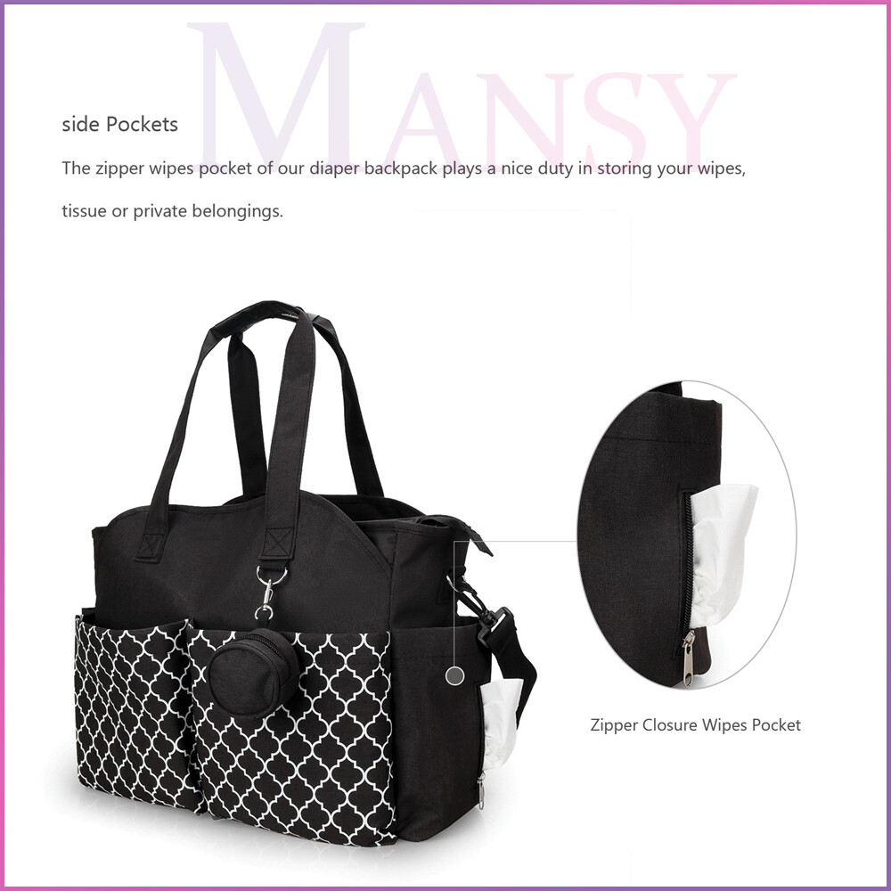 side Pockets, The zipper wipes pocket of our diaper backpack plays a nice duty in storing your wipes, tissue or private belongings.