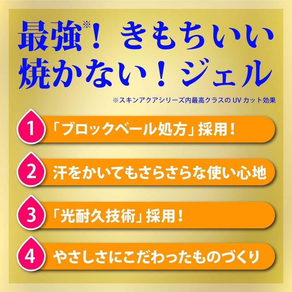 A gel-type sunscreen with the highest UV-blocking effect in the series. The moment it is applied, it blends seamlessly into the skin and does not stick to the skin even when sweating or when applied over perspiration, leaving it feeling comfortable and smooth, just like bare skin.