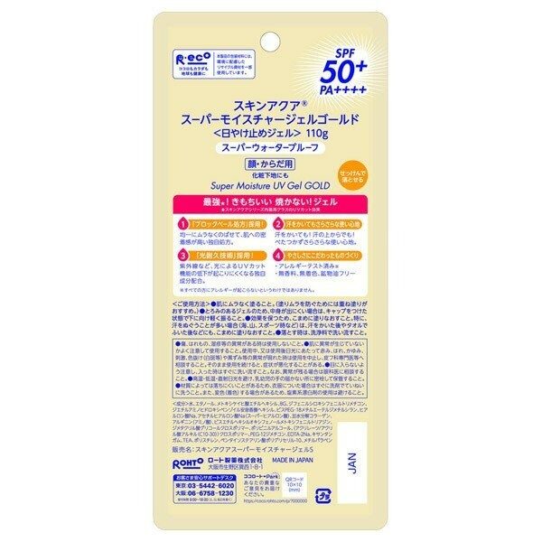 Rohto Skin Aqua Super Moisture Gel Gold 110g - SPF50 + / PA ++++.