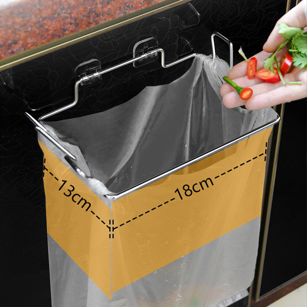 Household Supplies Stainless Steel Trash Bag Holder Over Door Hook Rack Garbage Hanger Cupboard Stand ABS + Stainless Steel Trash Organizer Rack Rubbish Bin Bag Holder