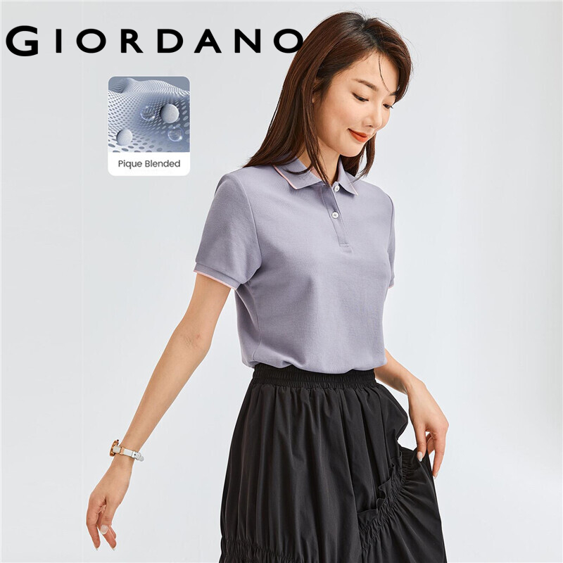 Giordano Women Polo Shirts Classic Collar Ribbed Cuffs Pique Polo Shirts Mesh Structure Short Sleeves Slim Polo Shirts 05311399