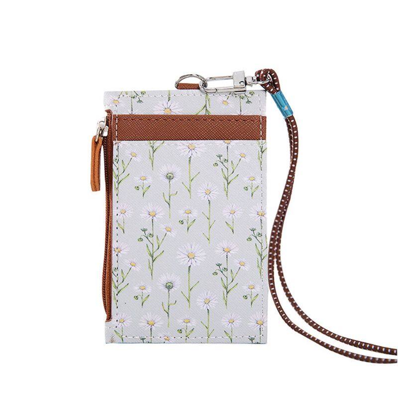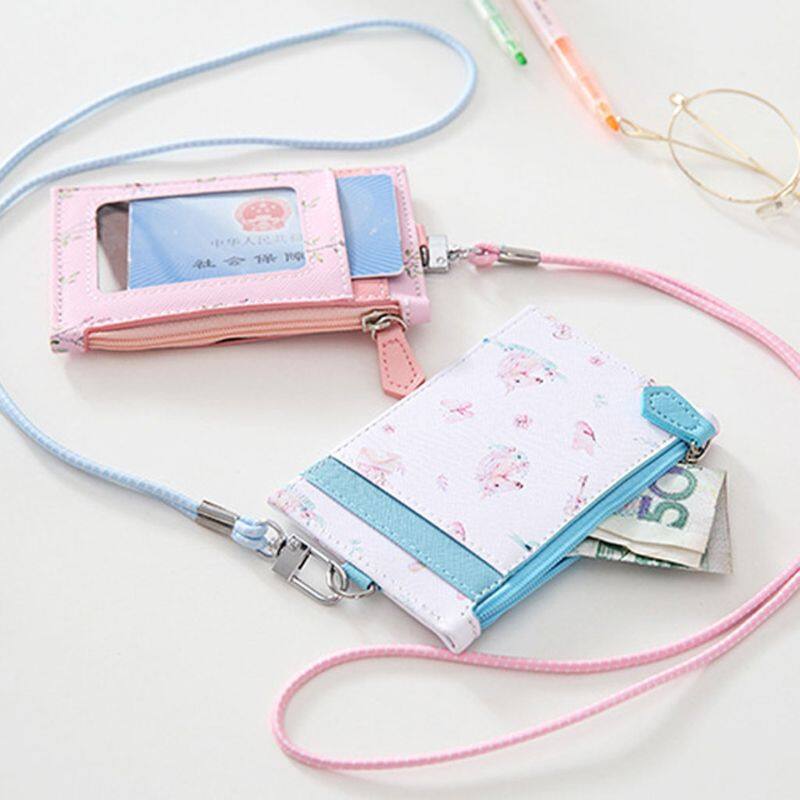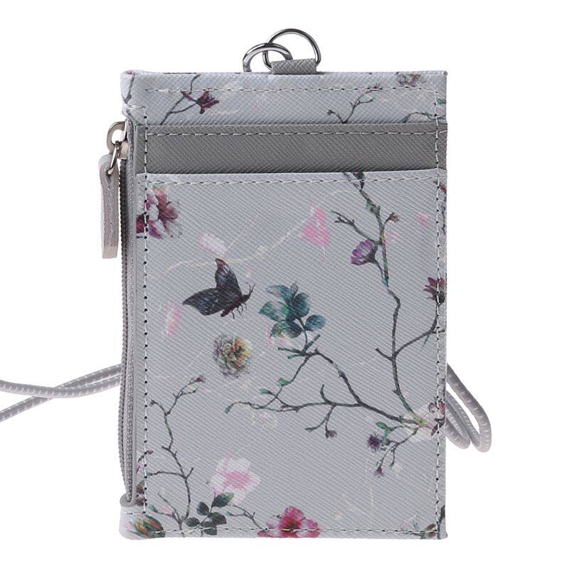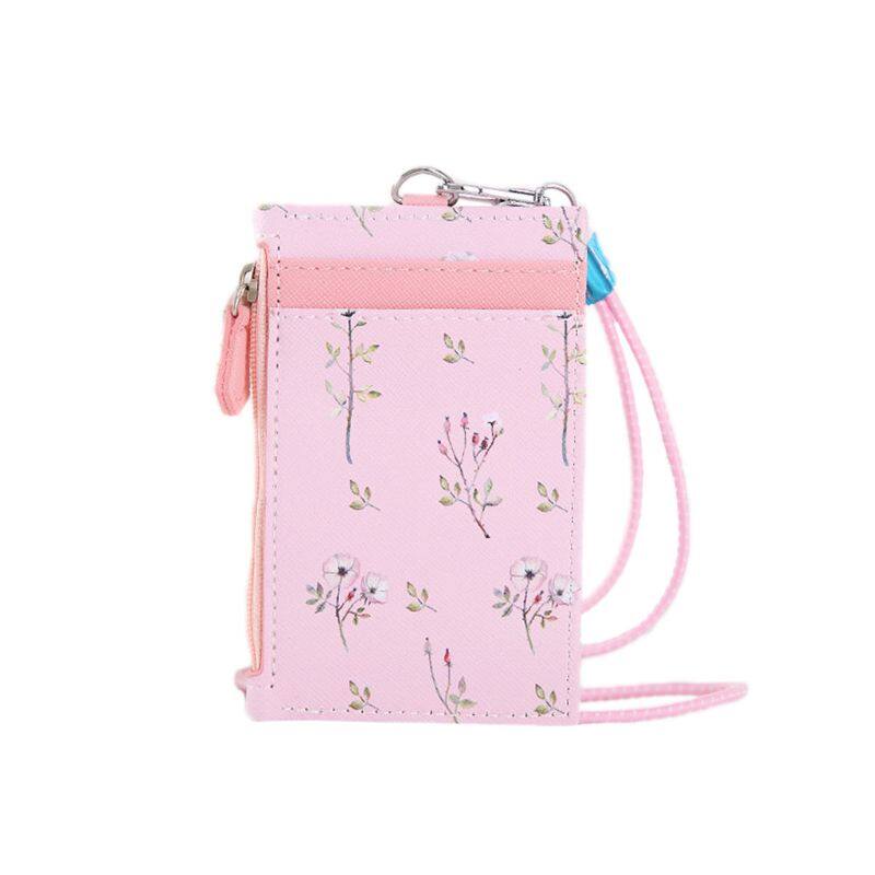 Portable ID Badge Credit Card Holder Leather Pocket Case Business Wallet with Neck Lanyard