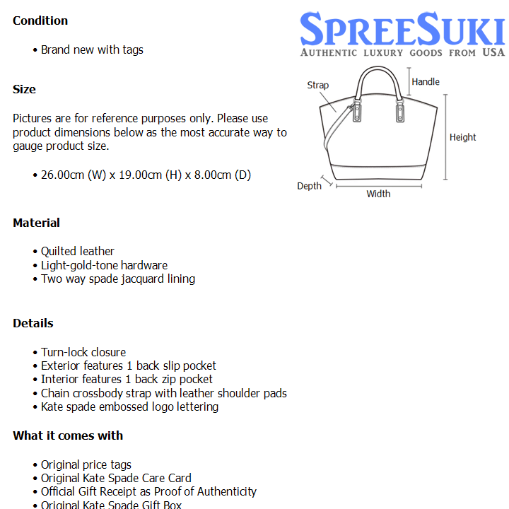 All our products are 100% authentic and purchased from Kate Spade stores in USA. We are a reputable registered business in Singapore and it is illegal to sell counterfeit goods in Singapore. This product also comes with a gift receipt which is printed by the Kate Spade store that we purchased the item from. It states the item that we purchased and the Kate Spade store that it was purchased from, proving the authenticity of the item. Buy with confidence.