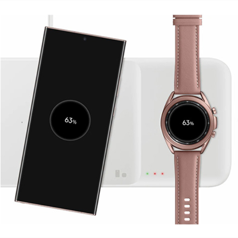 - The right fit for your Galaxy Watch : With the dedicated spot for Galaxy watches, you can keep your timepiece powered up to get you through your day. An interior magnet on the right side of the charger guides your watch into place to charge. And on the left you can charge your phone, Galaxy Buds series and more.