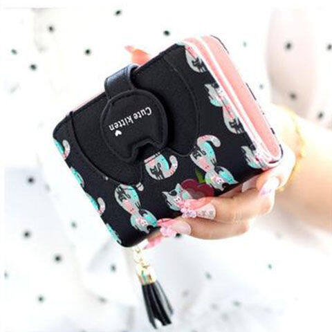 ZePo Korean Short Wallet Cut Cute Mini Coin Purse Girl Card Holder Zipper Ladies Wallet Buckle Wallet For Women