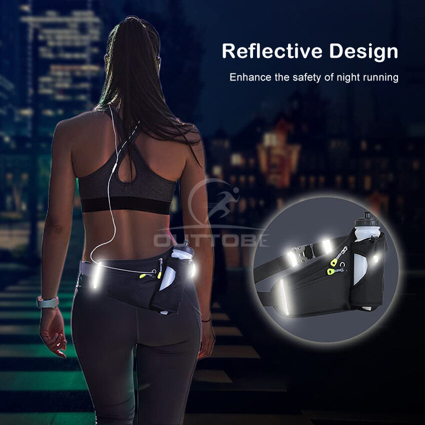 Outtobe Waist Bag Sports Hydration Belt Bag Running Belt Bum Bag with Water Bottle Holder Hidden Pouch Portable Gym Bag for Running Cycling Hiking Walking(Only bag, No kettle)