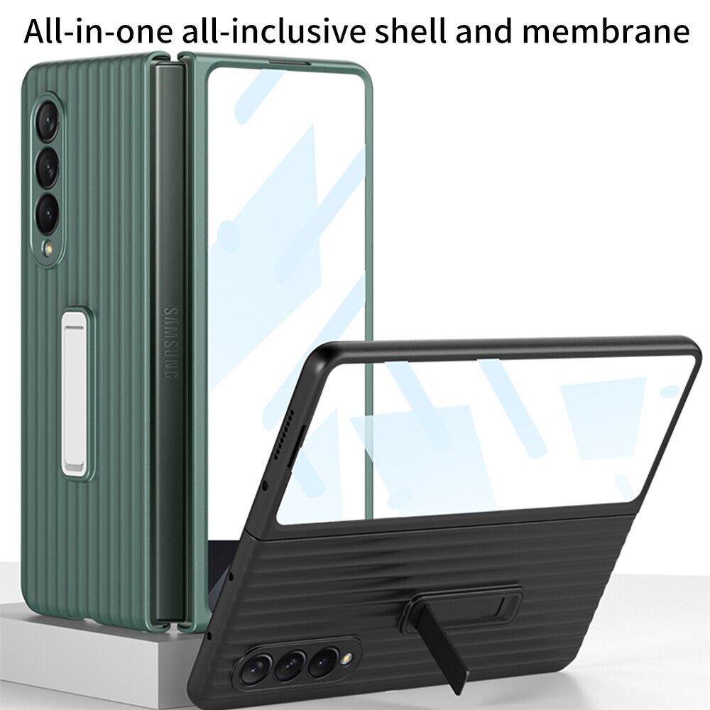 KISSCASE Magnetic Stand Vertical Pattern Mobile Phone Case with Screen Tempered Glass Film for Samsung Galaxy Z Fold 3 5G Foldable PC Hard Case