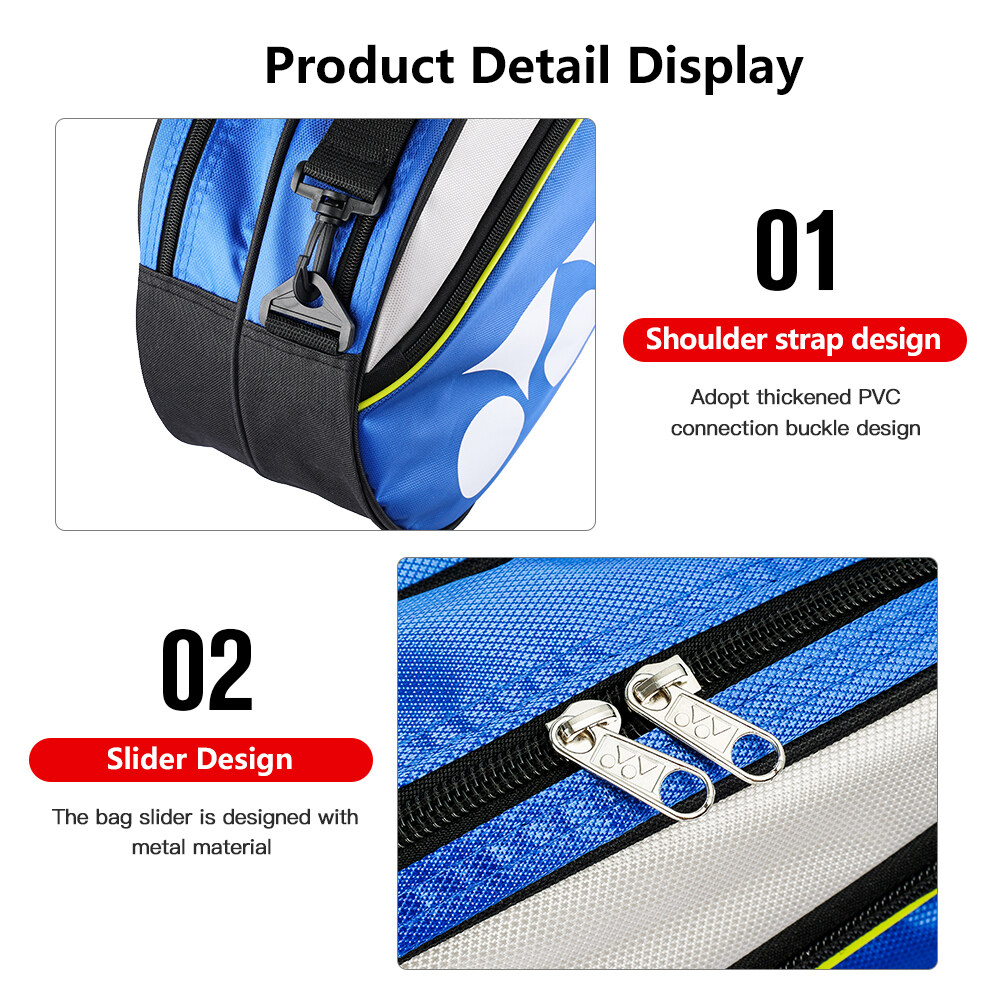 Zacro[Ready Stock] Y-onex 9332 Badminton Bag Double Zips Bag with Shoes Compartment Shoe Bag+ 2 Main Packets 2 Sides Pockets +1 Sling Straps Maximum capacity can hold 6 badminton rackets