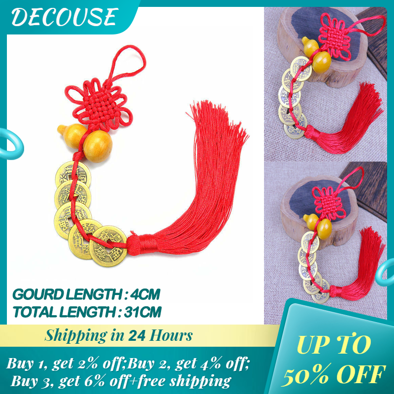 *Five ancient copper coins were knitted b hand with Chinese knots, gourds
