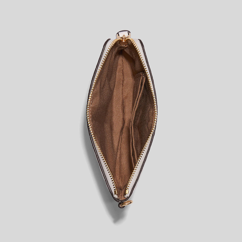 Coach Wristlet In Gift Box Small Wristlet Signature Wildflower Corner Zip Khaki # C8732