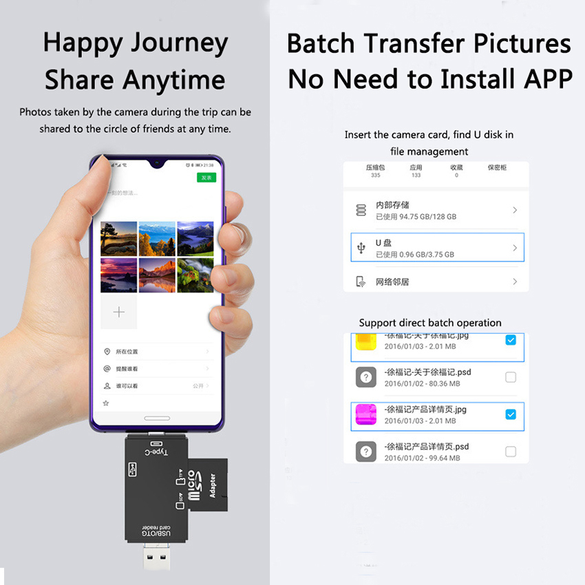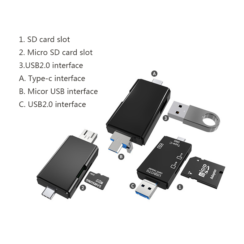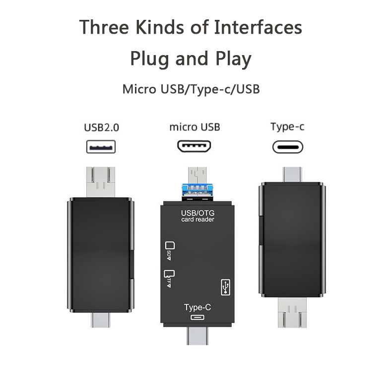OTG Card Reader,USB2.0 Card Reader ,SD Card, Mirco SD Card ,USB2.0*2,Type C,Micro USB ,U Disk Mobile Phone Reader ,Desktop Laptop Data Reader Writer Storage Micro SD/TF Compact Flash Card Reader with