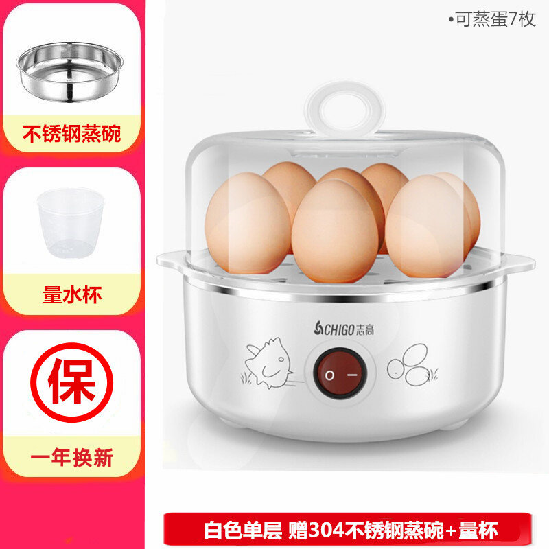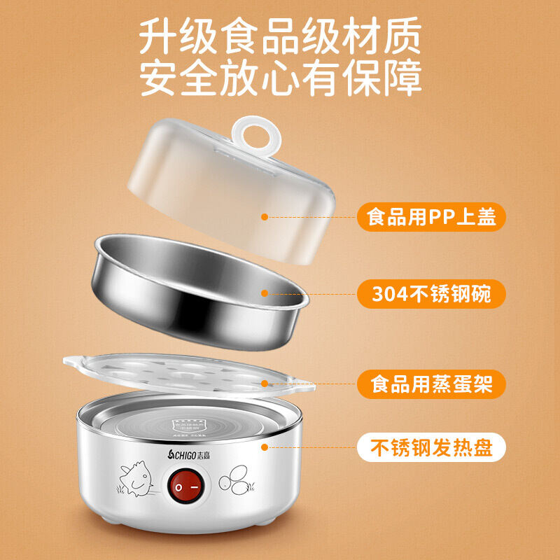 Chigo Egg Steamer Household Single Double Layer Three Egg Boiler Semi-automatic Power off 304 Stainless Steel Breakfast Machine Multi-Function