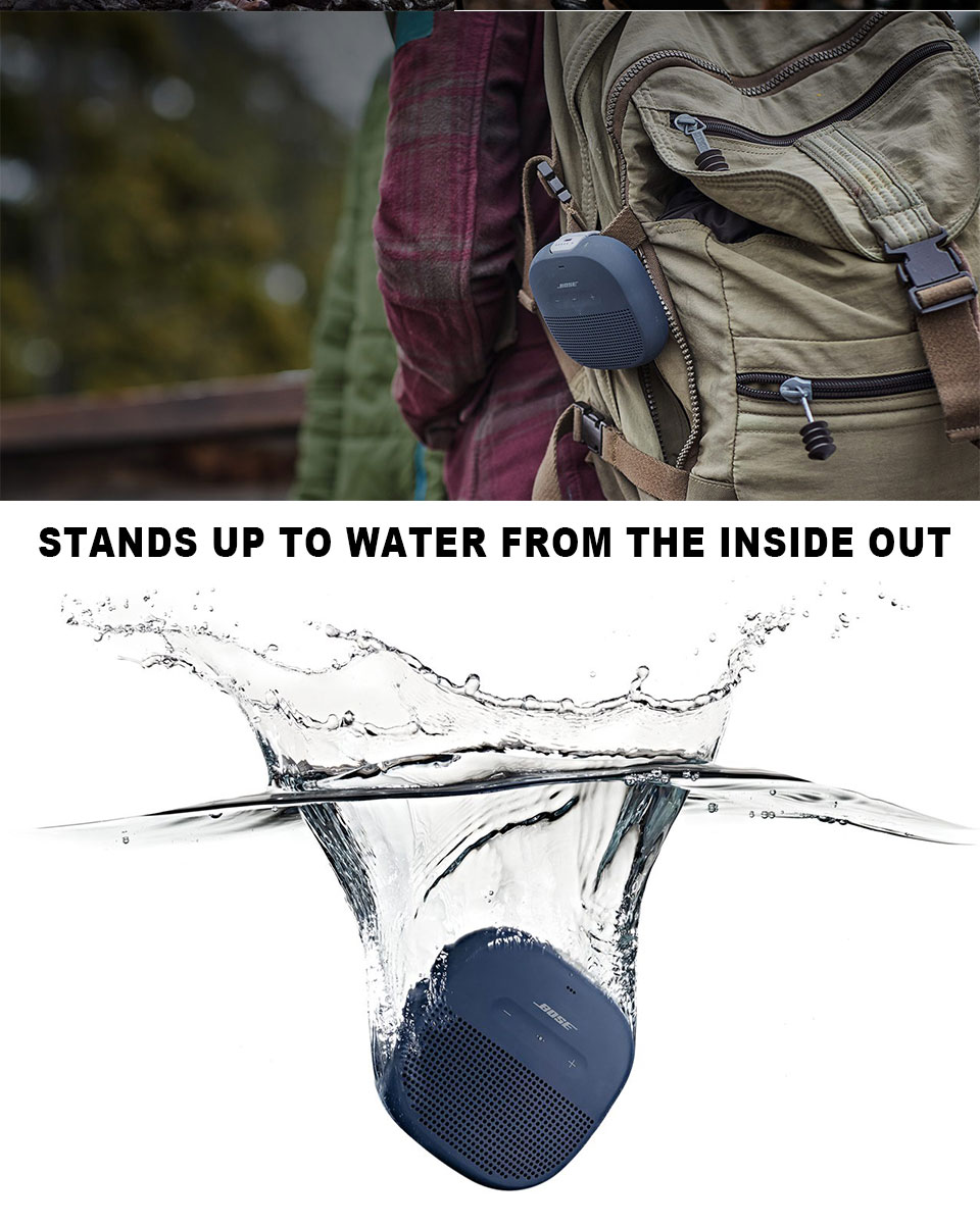 When a portable speaker is this small and powerful, you’ll never leave it behind. So when adventure is calling, grab the SoundLink® Micro Bluetooth® speaker on your way out the door and make the best of every moment. This small speaker is at home in your hand. It delivers crisp, balanced sound and unmatched bass for its size. Bose did it with a custom mounted transducer and passive radiators that produce sound that's loud and clear, even outside.