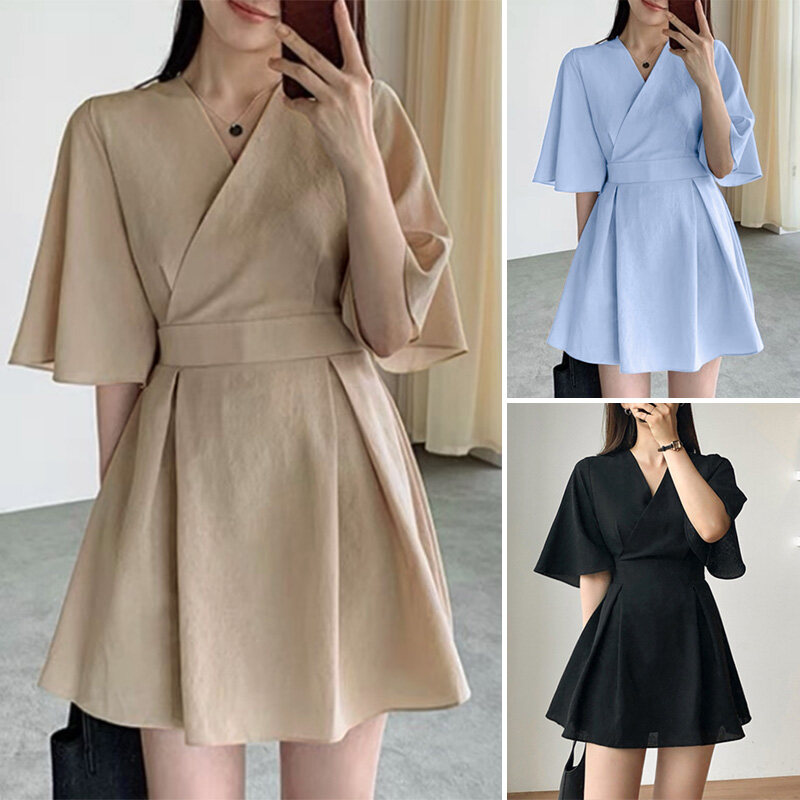 Features: Pleating,Pagoda Sleeve,V-Necked