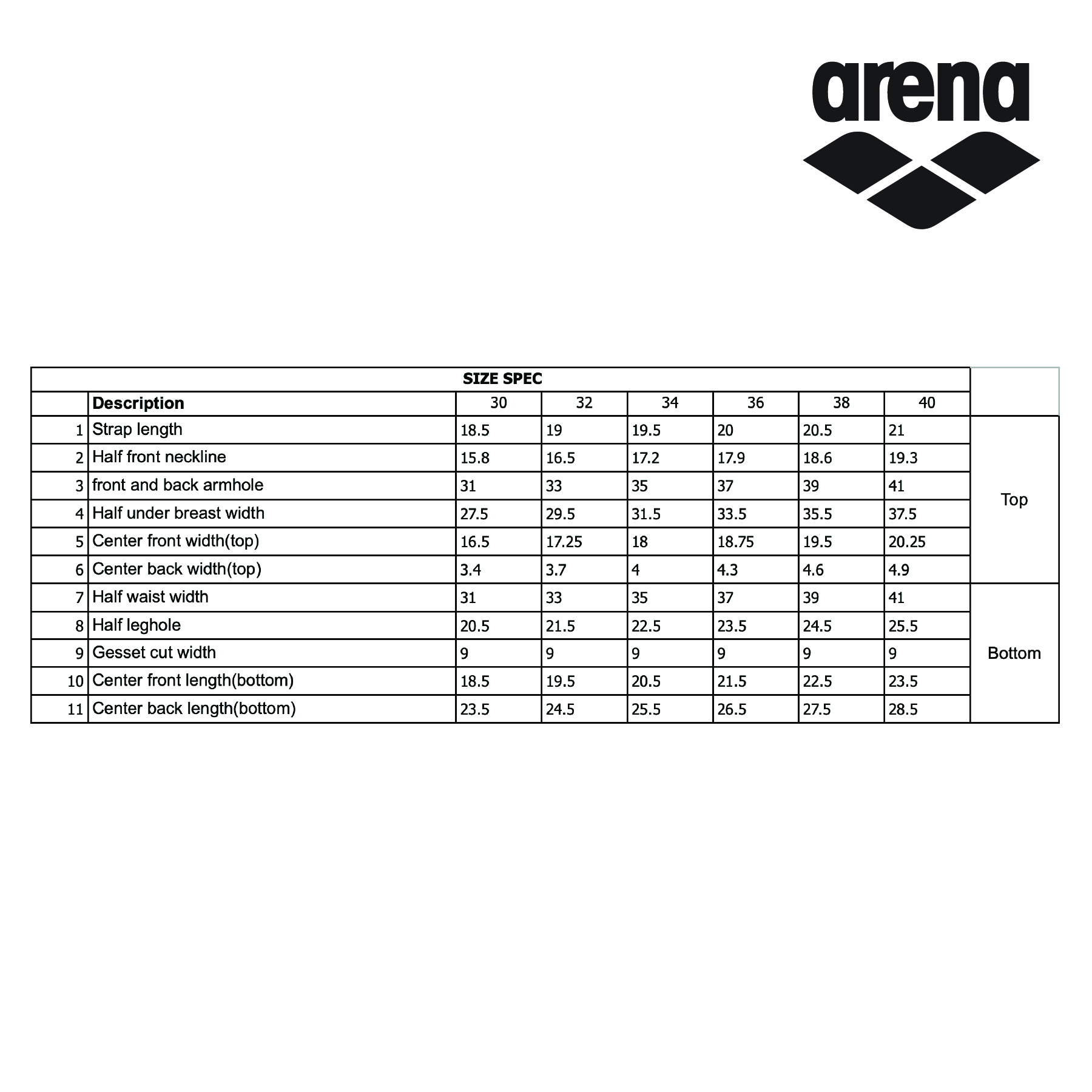 - To ensure proper fit, please refer to the size chart when purchasing. A swimsuit that is too small may cause early degradation of fabric damage, and may cause the marks to misalign.