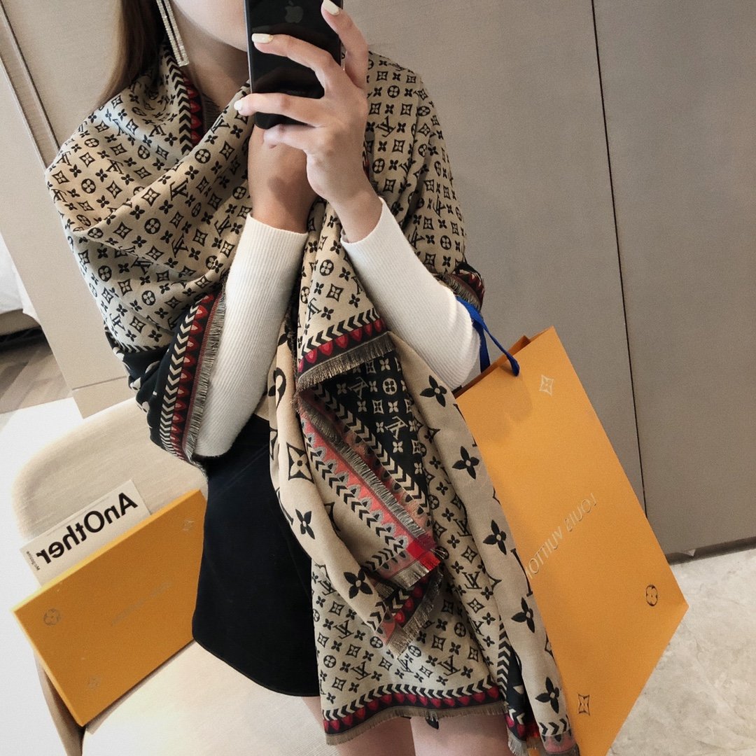 ♀✘ↂ Original LV Scarf Warm Scarf Ladies Cashmere Pure Wool Blanket Cashmere Scarf Neck Headband Headscarf Casual Winter Scarf Shawl Scarf