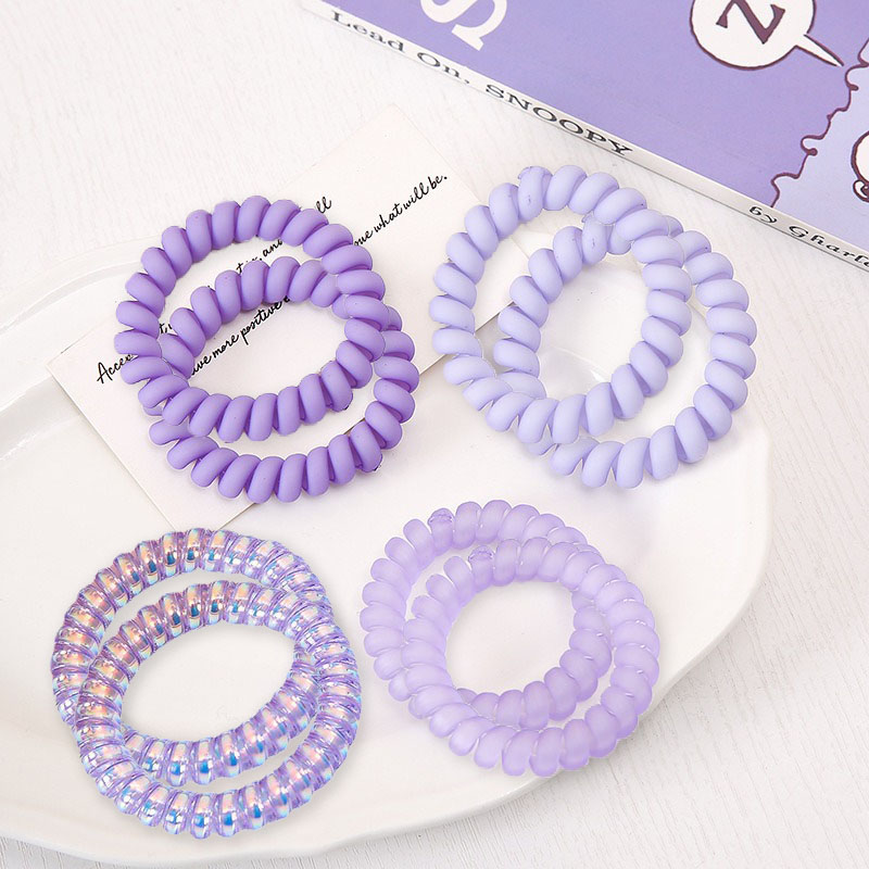 [SG?Lavender Violet Lover] 4pc 8pc 5cm Shining & Matte Purple Plastic Teleties Band Ponytail Holder, Telephone Wire Cord Spiral Head Ties Hair Band Hair Ring Hair Ties, Ideal Size to Wear as Bracelet