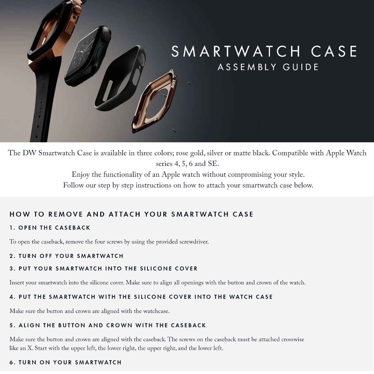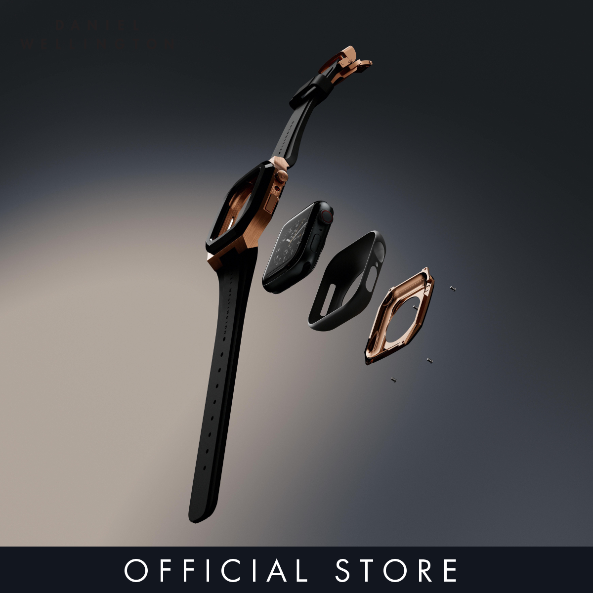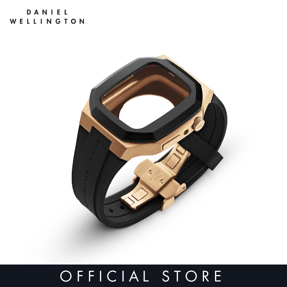 Daniel Wellington Switch Rose Gold 40/44mm - Smartwatch case for Apple watch series 4, 5, 6 & SE - Stainless steel case with rubber strap - DW - Smart watch accessories case and strap