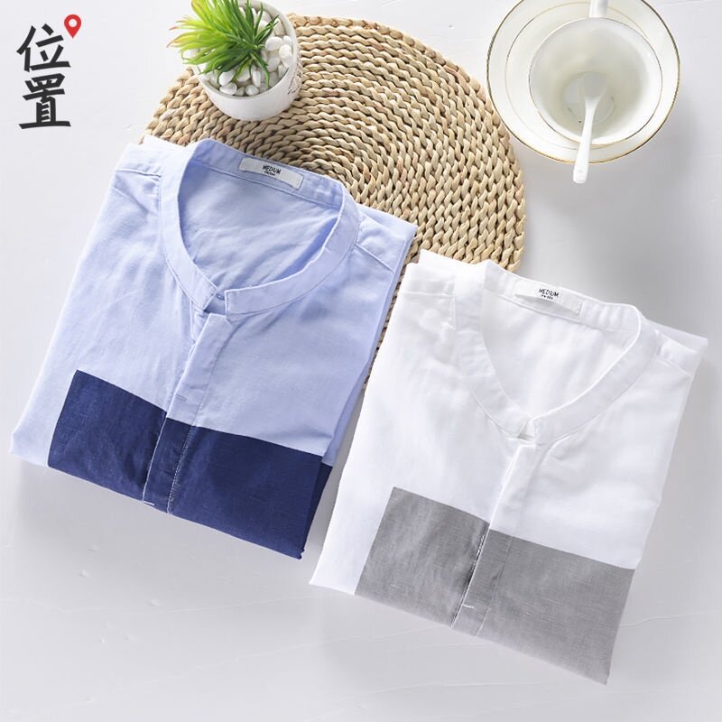 Summer Cotton Linen Short Sleeve Shirt Men Color Matching Seven-point Sleeve Shirt Trend Jacket