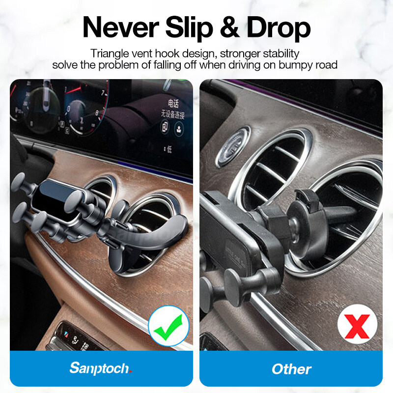 Sanptoch Gravity Car Phone Holder Mount 2022 Upgraded With Newest Air Vent Clip Auto Lock Hands-Free Stand For 4-7 Inch iPhone 12 13 Pro Max Samsung Xiaomi Huawei Oppo All Phones