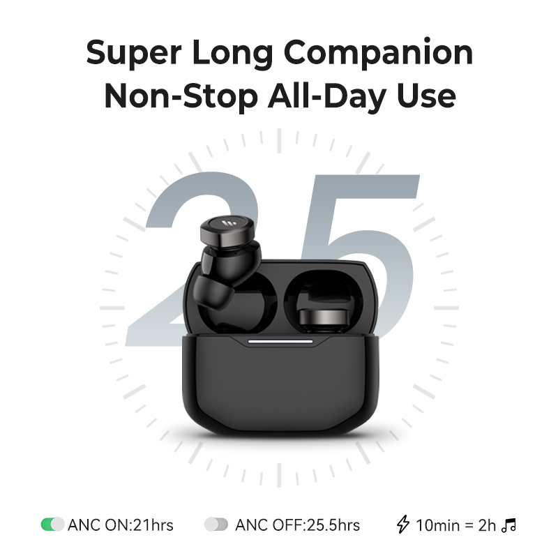 The parallel-axis dual dynamic driver configuration is combined with Edifier's industry-leading acoustic technology for powerful performance across the frequency range. Large 10mm main drivers deliver full bass and tight mids. Precise 6mm tweeters produce soaring highs. It's a match made in Edifier.