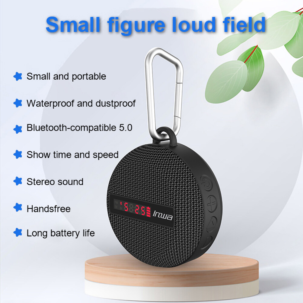 4. Portable and compact design: Appearance size: 93*87*47mm, this mini bluetooth-compatible speaker can be easily carried with you. And with a metal hook, it is more convenient to carry when traveling.