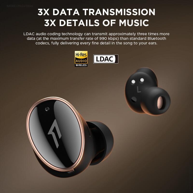 headphones. Simply put, you can get a wireless audiophile experience with 1MORE EVO.3X DATA TRANSMISSION