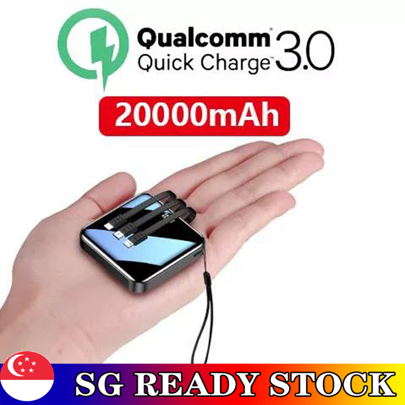 【SG READY STOCK】Mini power bank 20000mah Latest Fast Charging Built-in 3 Cables Digital Display Powerbank Portable External Battery Pack 快充充电宝
