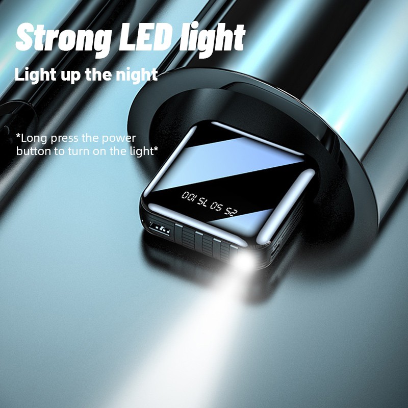 Full screen, large capacity, dual output, dual LED lights, full lens power bank, high appearance, mini body, much smaller than the palm, lighter body, one-handed, large capacity, portable