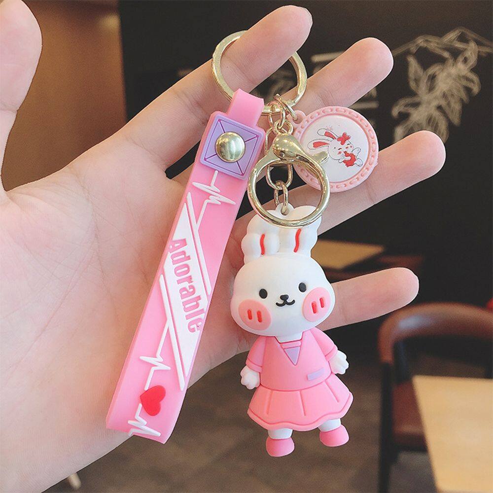 HUIHEYU Exquisite Cute Bear Bunny Doll Key Holder Car Key charms Couple Gift Blush Animal Keychain Wristlet Keychain Bag Ornaments Backpack Pendant