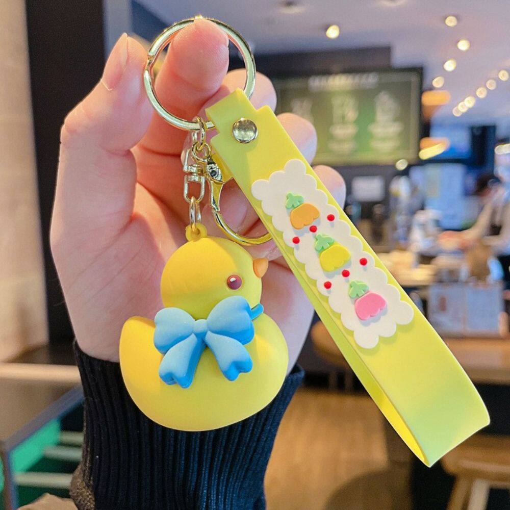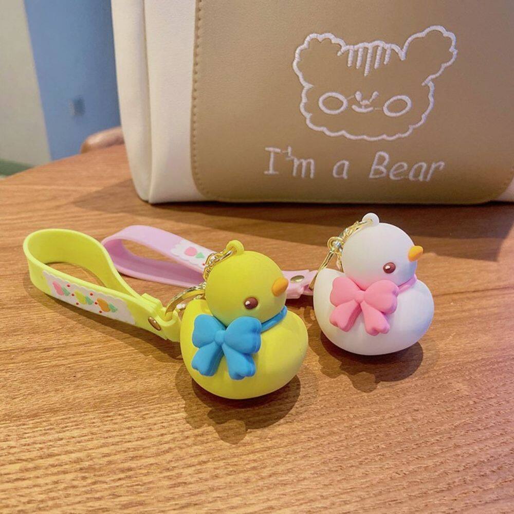 HUIHEYU Cute Exquisite Gifts Couple Car Key charms Doll Key Holder Backpack Pendant Bow Tie Duck Keychain Bag Ornaments Wristlet Keychain