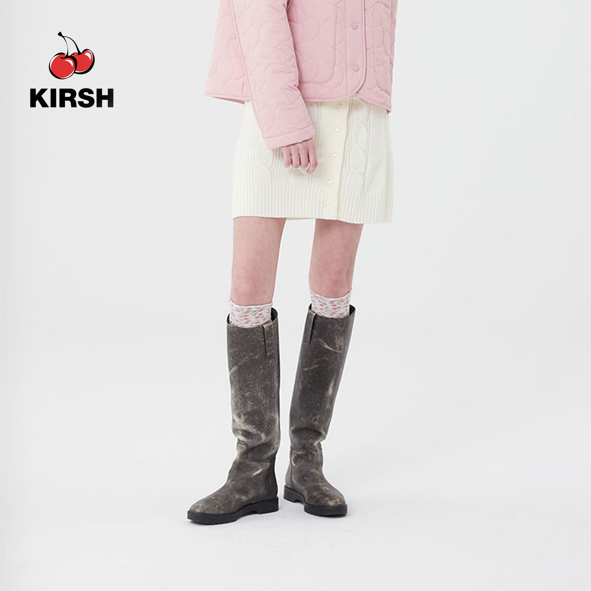 [KIRSH] SMALL CHERRY BUTTON KNIT SKIRT