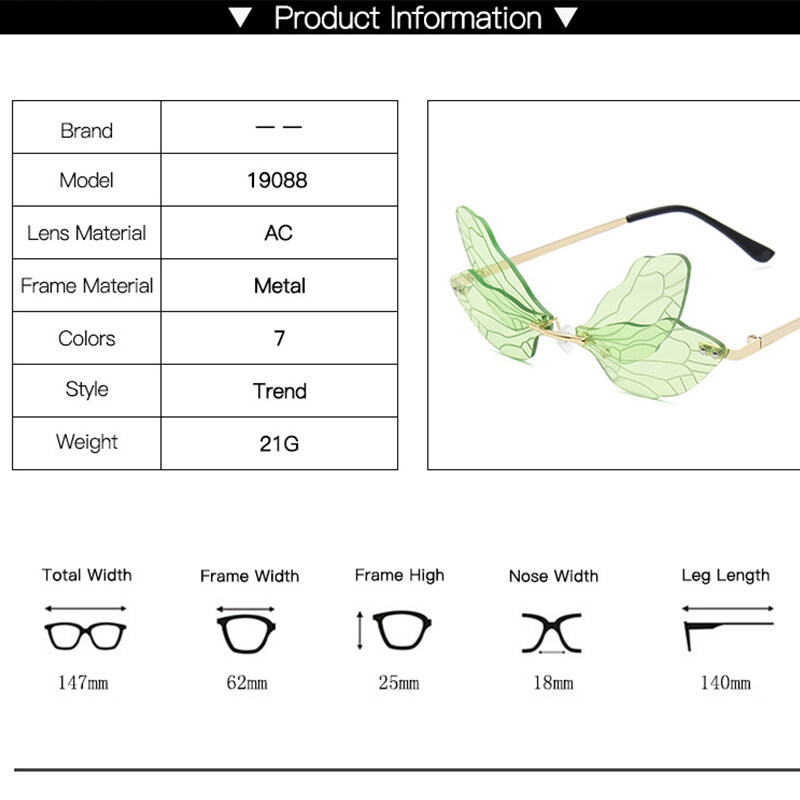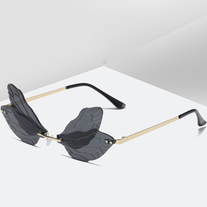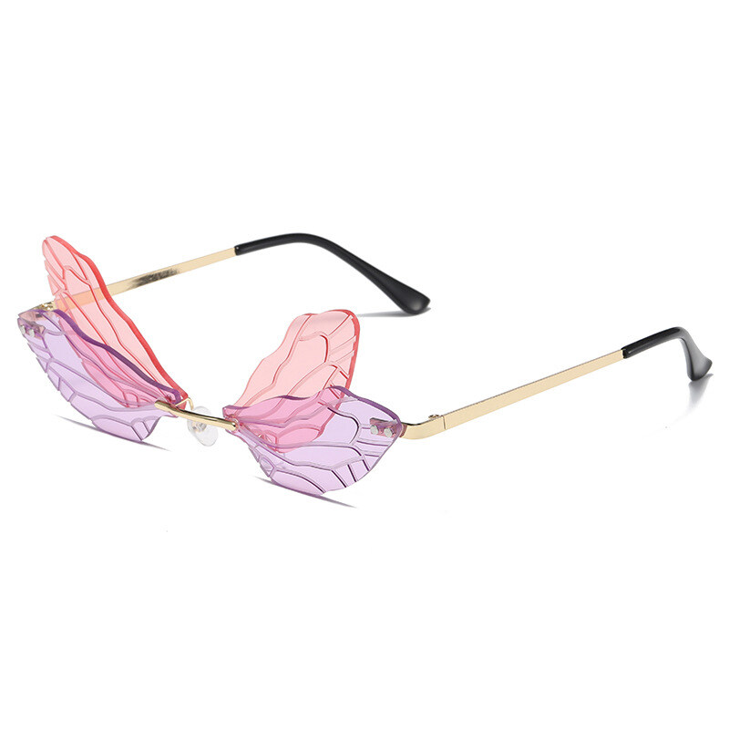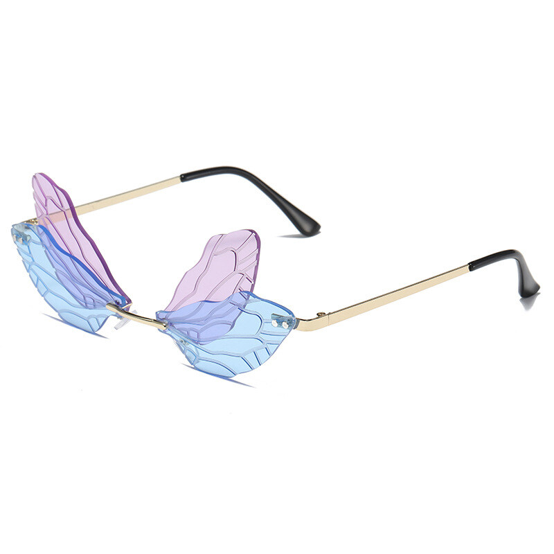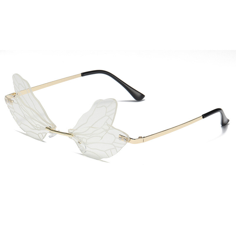 New Personality Frameless Cut Edge Sun glasses for Women European and American Style Funny Prom Shades for Women Ladies Dragonfly Wings Sun Glasses PTQ