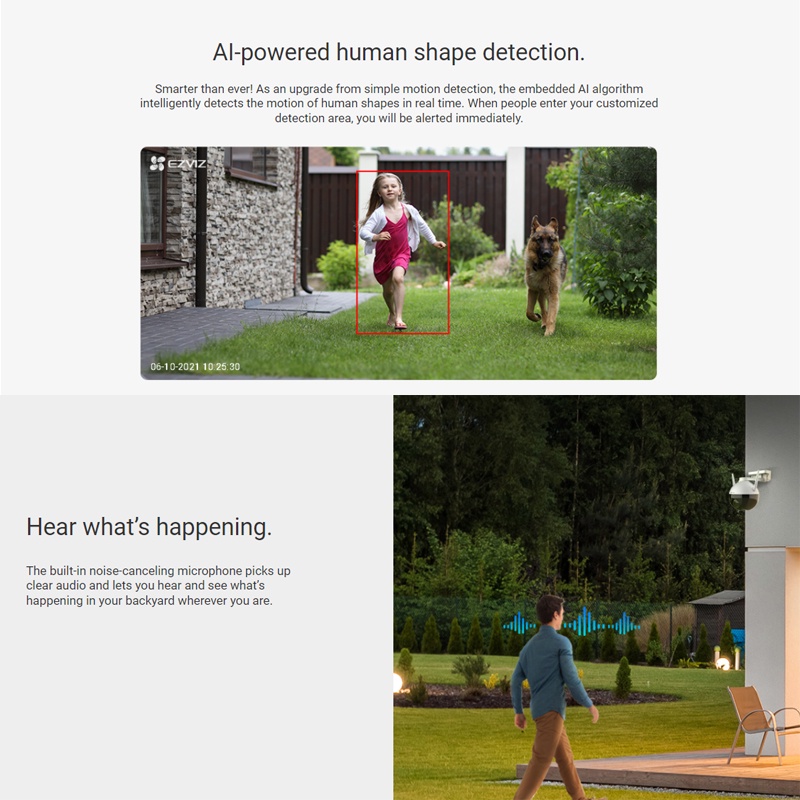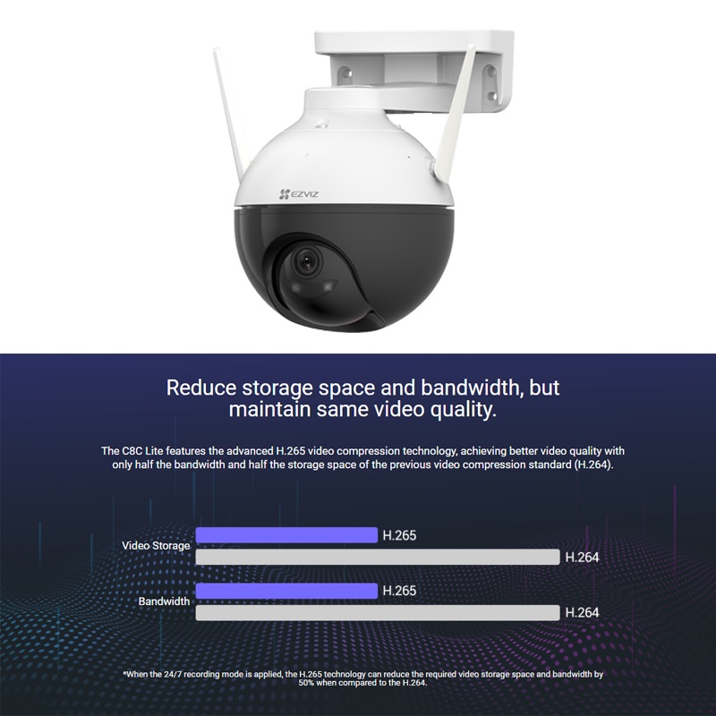 Welcome to EZVIZ Official Store~ We are 100% Singapore in stock, ship within 24 hours of your order! Specifications: ✅Model CS-C8C Lite (1080P) ✅Safty Mark No.:210084-15 ✅Camera -Image Sensor: 1/2.7" Progressive Scan CMOS -Shutter Speed: Self-adaptive shutter -Lens: 4mm @ F1.6, view angle: 87° (Horizontal), 105° (Diagonal) -PT Angle: Pan: 352°, Tilt: 95° -Minimum Illumination: 0.5 Lux @ (F1.6, AGC ON), 0 Lux with IR (data is obtained from EZVIZ laboratories) -Lens Mount: M12 -Day & Night: IR-cut filter with auto switching -DNR: 3D DNR -WDR: Digital WDR -Black & White Night Vision: 30 m / 100 ft. ✅Video & Audio -Max Resolution: 1920 × 1080 -Frame Rate: Max: 30fps; Self-Adaptive during network transmission -Video Compression: H.265 / H.264 -H.265 Type: Main Profile -Video Bit Rate: Ultra-HD; Hi-Def; Standard. Adaptive bit rate. -Audio Bit Rate: Self-Adaptive -Max. Bitrate: 2Mbps ✅Network -Wi-Fi Standard: IEEE802.11b, 802.11g, 802.11n -Frequency Range: 2.4 GHz ~ 2.4835 GHz -Channel Bandwidth: Supports 20MHz -Security: 64/128-bit WEP, WPA/WPA2, WPA-PSK/WPA2-PSK -Transmission Rate: 11b: 11Mbps,11g :54Mbps,11n :72Mbps -Wi-Fi Pairing: AP pairing -Protocol: EZVIZ Cloud Proprietary Protocol -Interface Protocol: EZVIZ Cloud Proprietary Protocol -Wired Network: RJ45 × 1(10M/100M Adaptive Ethernet Port) ✅Storage -Local Storage: Micro SD card slot (Max. 256G) -Cloud Storage: EZVIZ Cloud Storage ✅Function -Smart Alarm: AI-powered human shape detection -Customized Alert Area: Supports -Audio: Supports mic -General Function: Anti-flicker, dual-stream, heart beat, password protection, watermark ✅General -Operating Conditions: -30°C ~ 60°C(-22°F to 140°F ), humidity 95% or less (non-condensing) -IP Grade: Weatherproof Design -Power Supply: DC 12V / 1A -Power Consumption: MAX. 6 W -Dimensions: 158 × 157 × 149 mm (6.22 × 6.18 × 5.87 inch) -Packaging Dimensions: 197 × 185 × 205 mm (7.76 × 7.28 × 8.07 inch) -Net Weight: 510 g (17.99 oz) -Weight (With Package): 885 g (31.22 oz) ✅In the box -Camera (×1) -Power Adapter (×1) -Screw Kit (×1) -Waterproof Kit (×1) -Drill Template (×1) -Regulatory Information (×1) -Quick Start Guide (×1) ✅Certifications -Certifications UL / FCC / CE / WEEE / REACH / ROHS