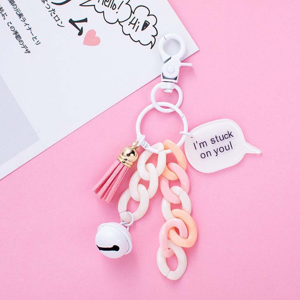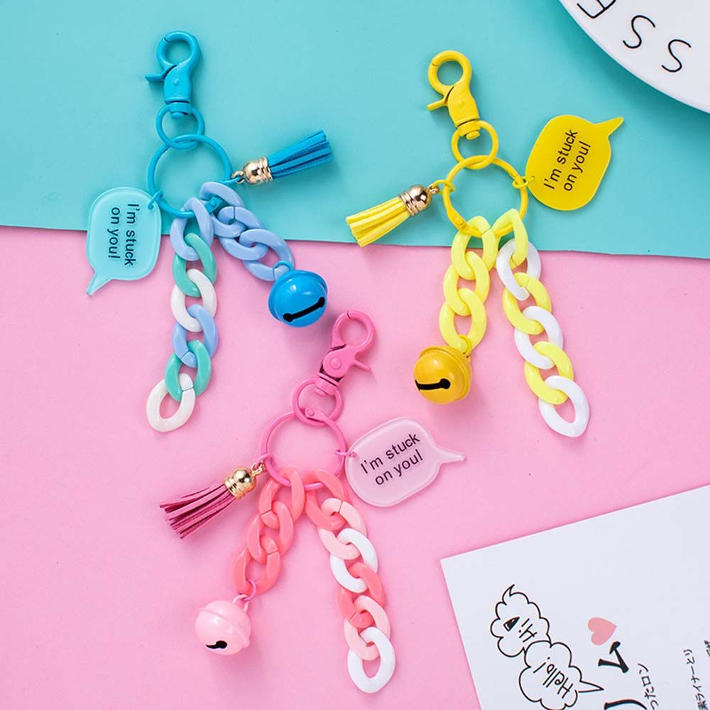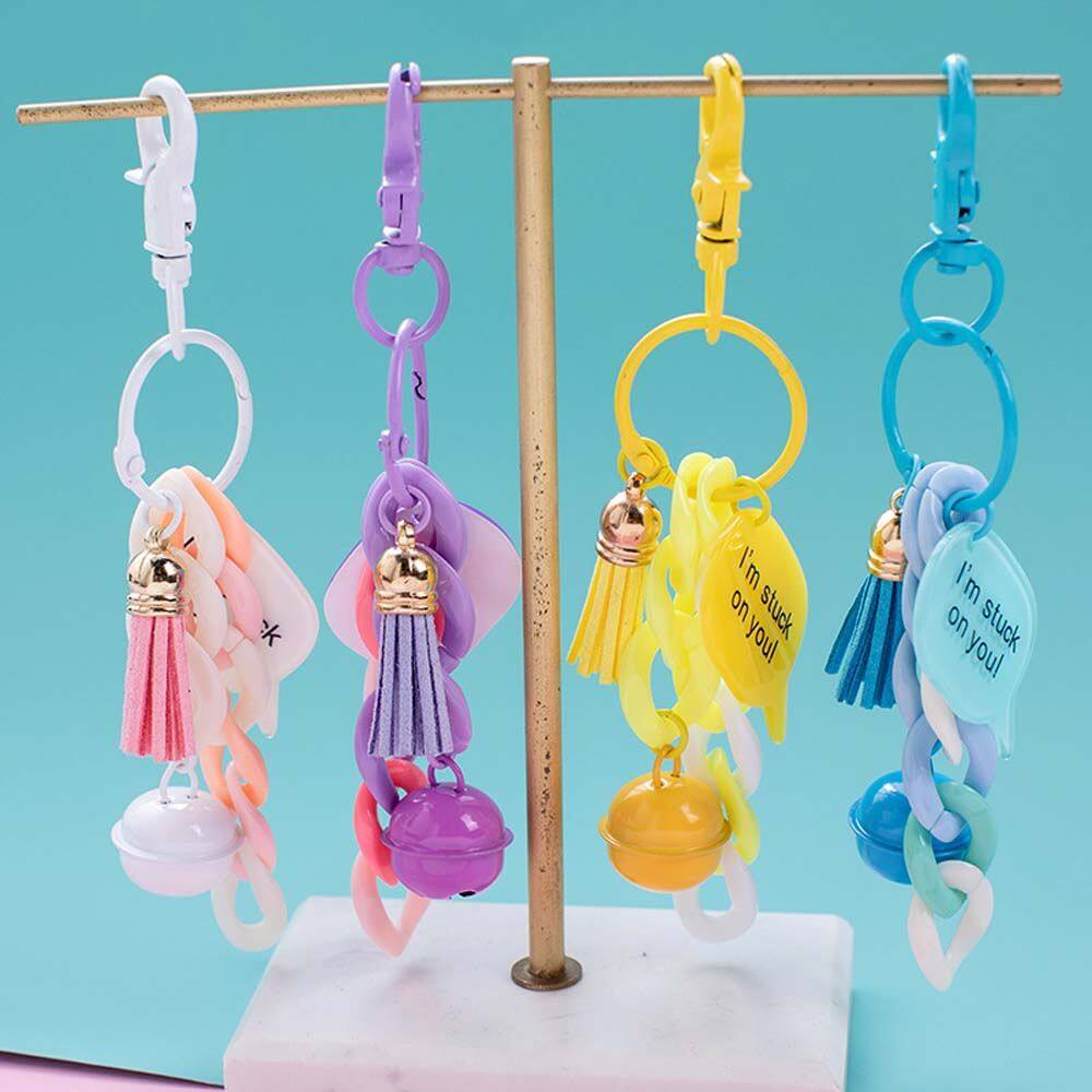 BINRUI Handmade Creative Backpack Decoration Phone ornaments Fashion Jewelry Acrylic Small Bell KeyChains Link Chain Keyring Car Keychain Bag Pendent