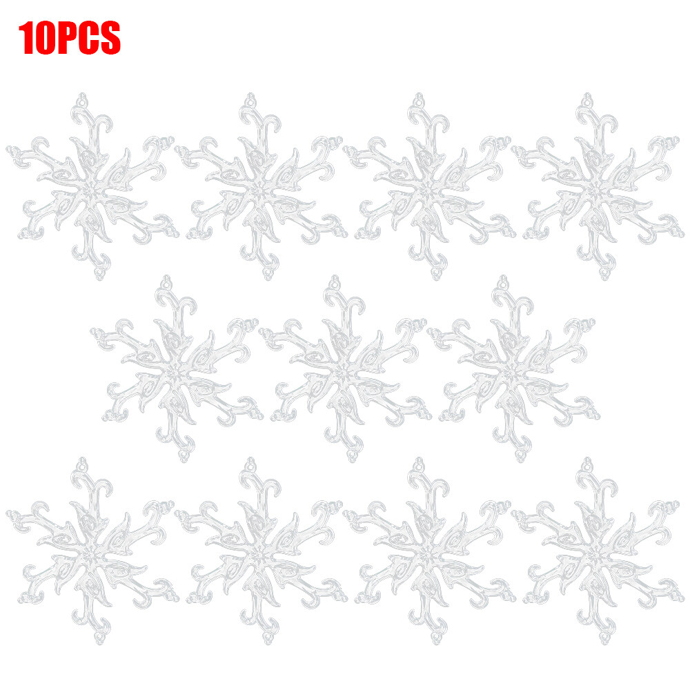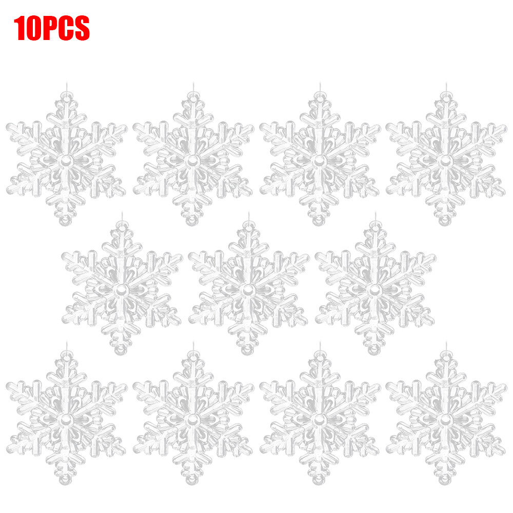 10pcs Christmas Transparent Acrylic Crystal Snowflake Christmas Tree Pendant Decoration New Year Decor Ornament