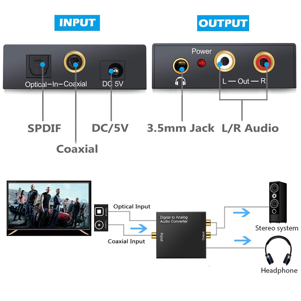 - Digital Optical Coaxial Toslink Signal to Analog Audio Converter is designed for either home or professional audio switching.
